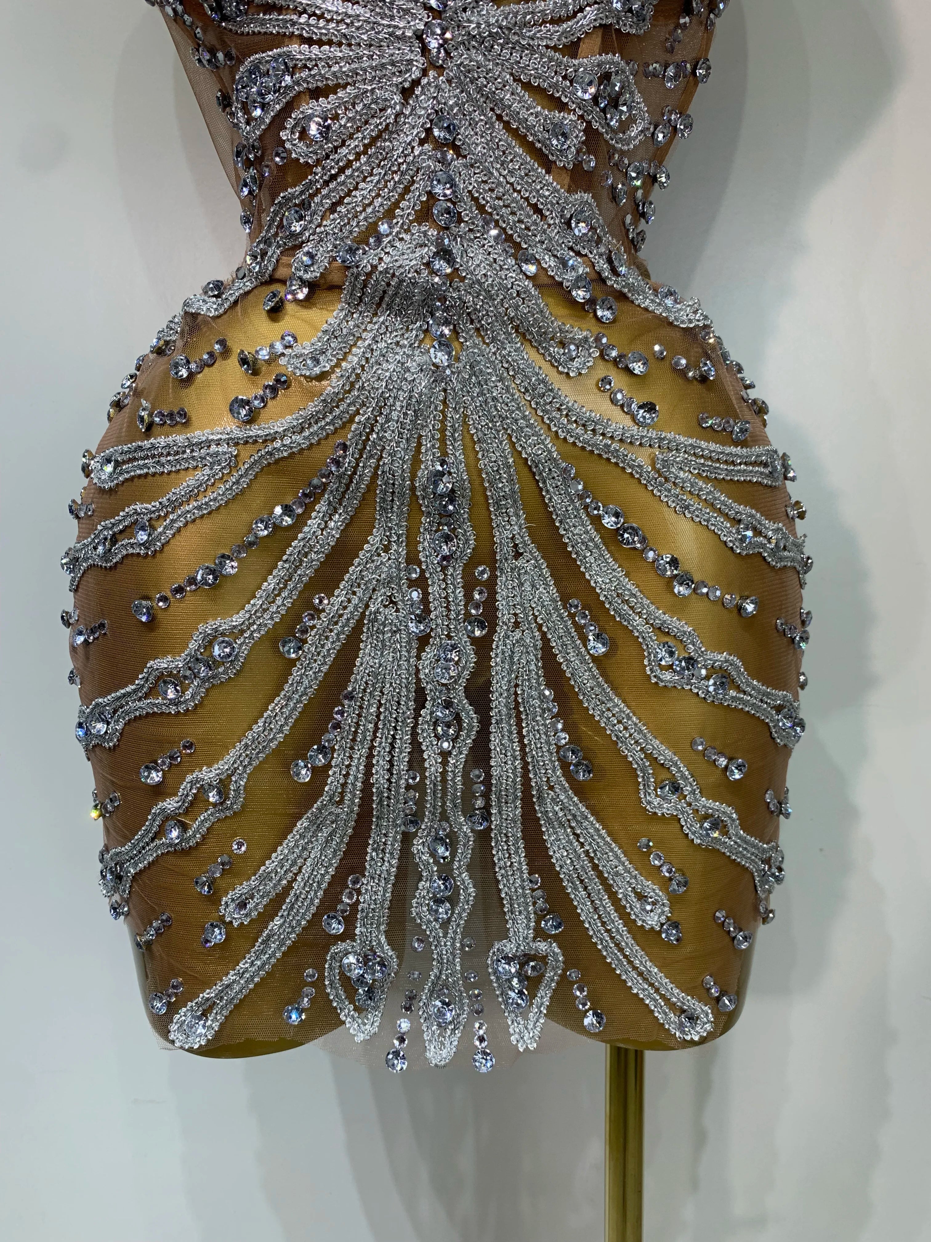 Ayah strapless rhinestone mini dress sexy sparkly short party dress for women.