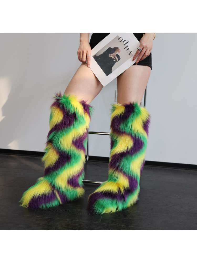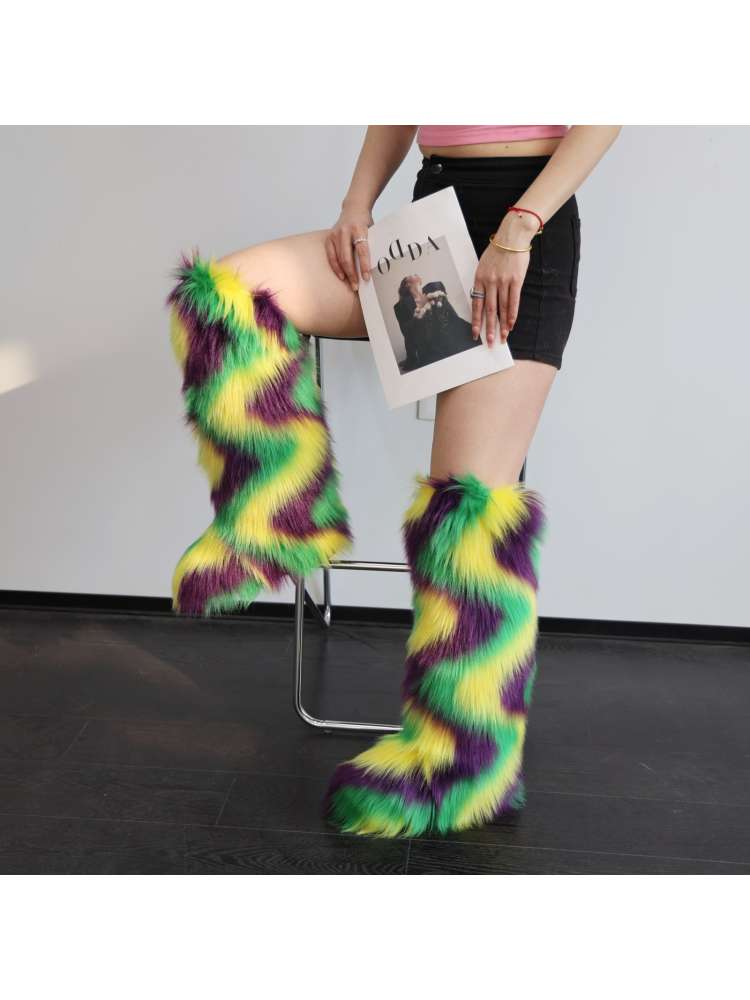 Fashion-forward Colorblock Ripple Knee-High Fur Boots offered at factory wholesale prices. Designed for retailers who want reliable quality, flexible quantities, and strong resale potential.