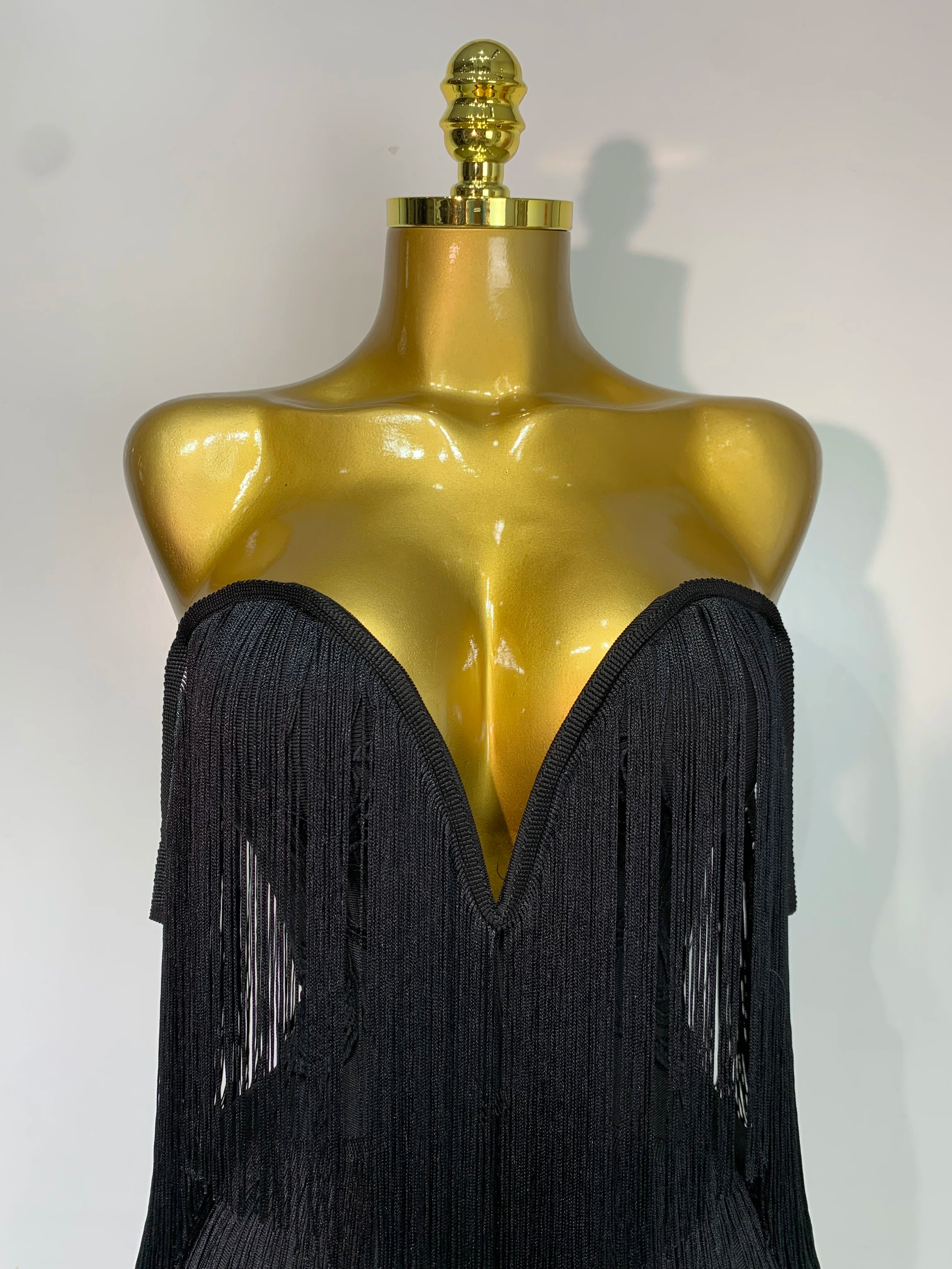 Kimberly sexy off-shoulder fringe bodycon dress with shimmering fringe details and elegant body-hugging fit.