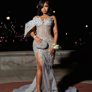 Sequin One-Shoulder Crystal Mermaid Prom Dress