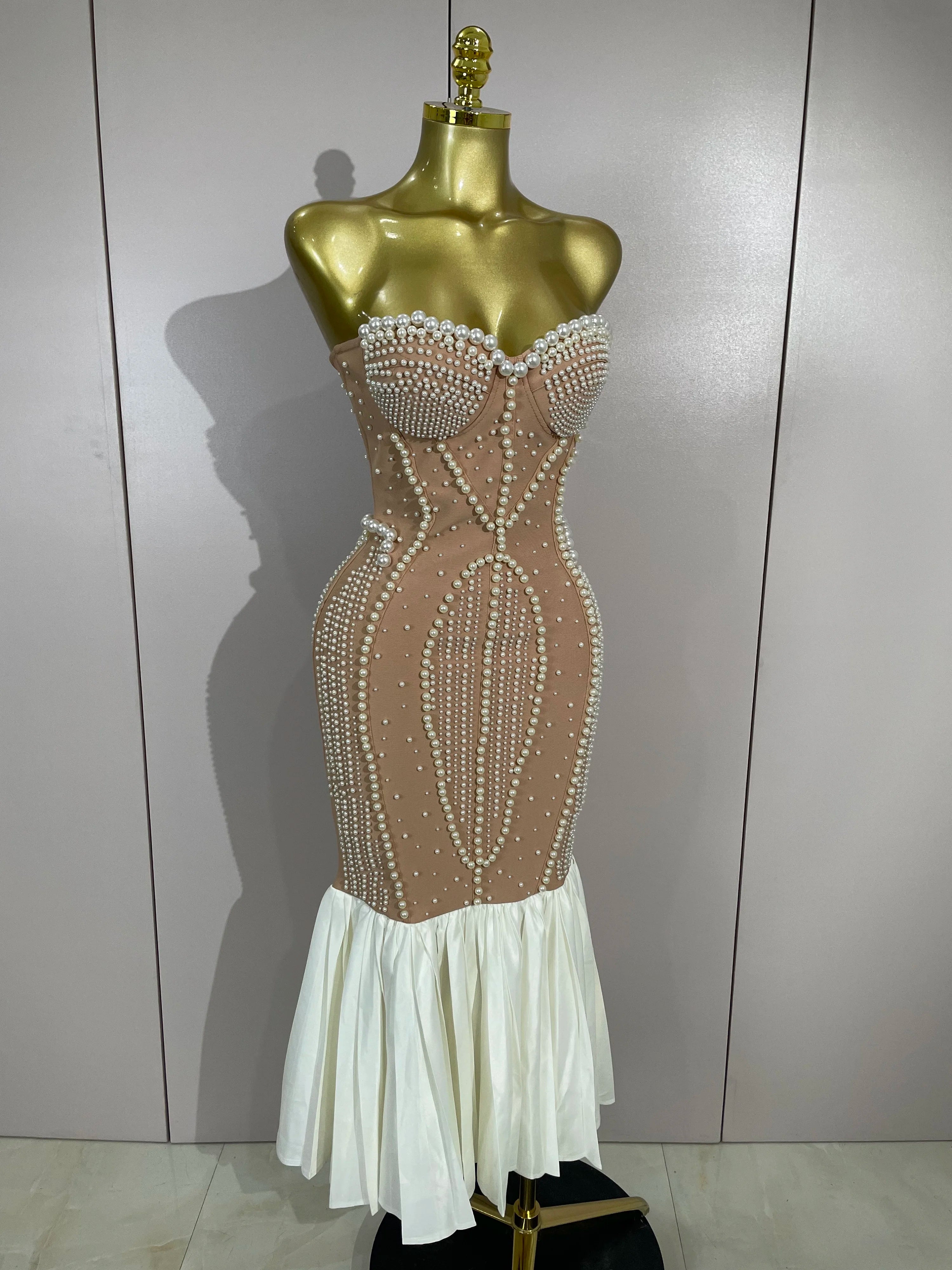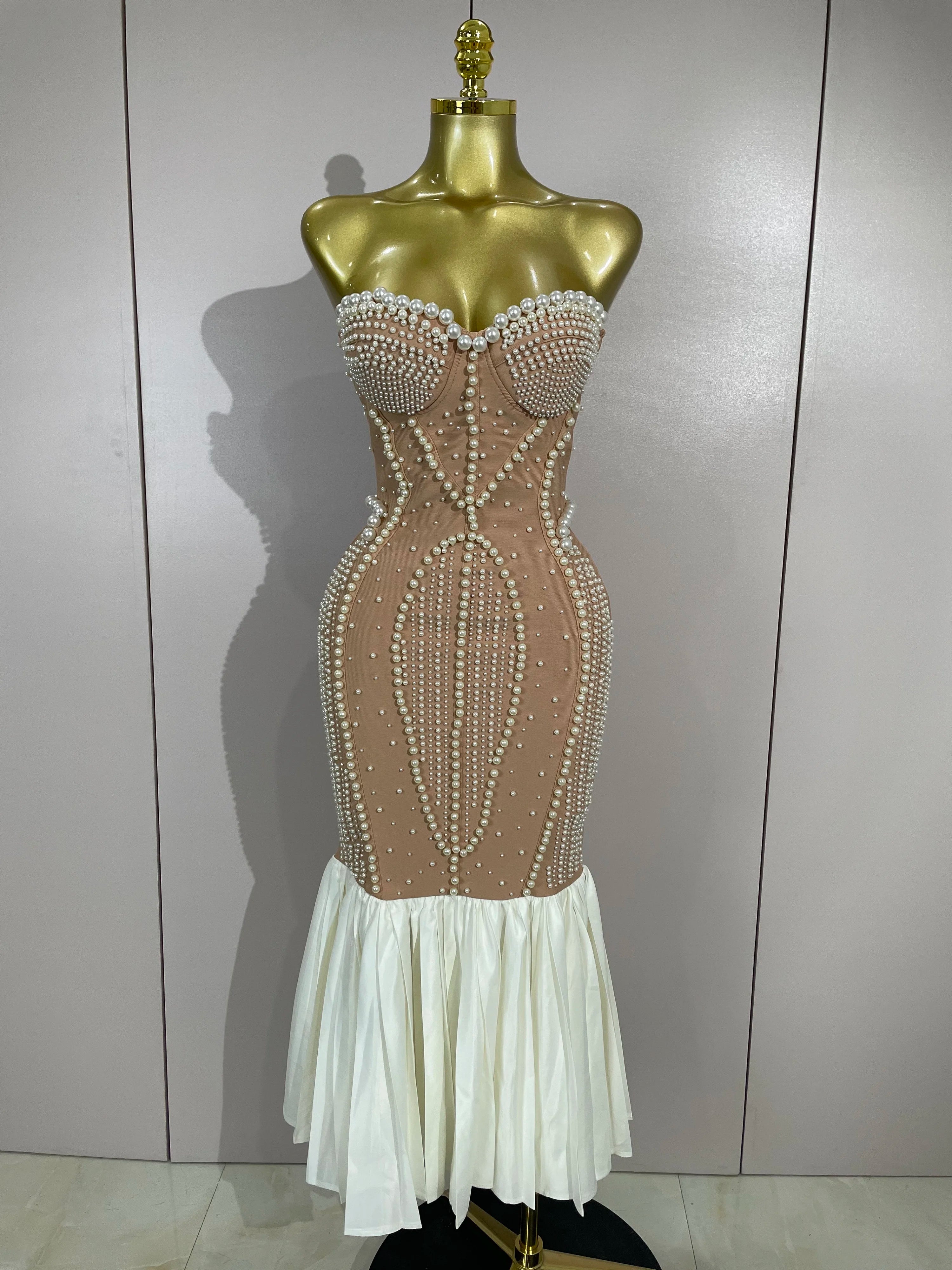 Shane Strapless Diamond & Pearl Bodycon Mermaid Dress