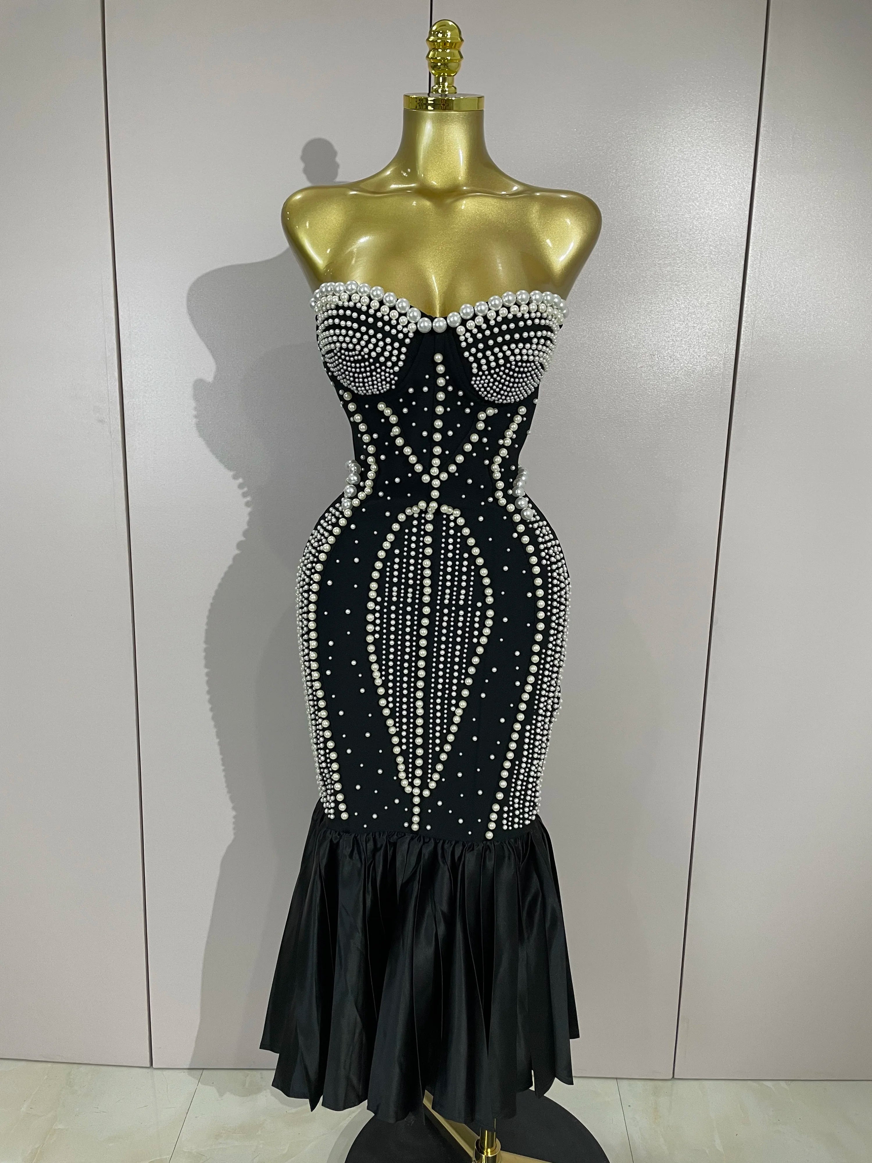 Shane strapless diamond and pearl bodycon mermaid dress for prom, evening parties, or red carpet events.