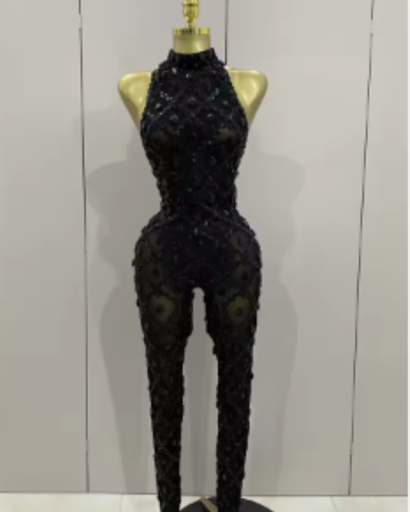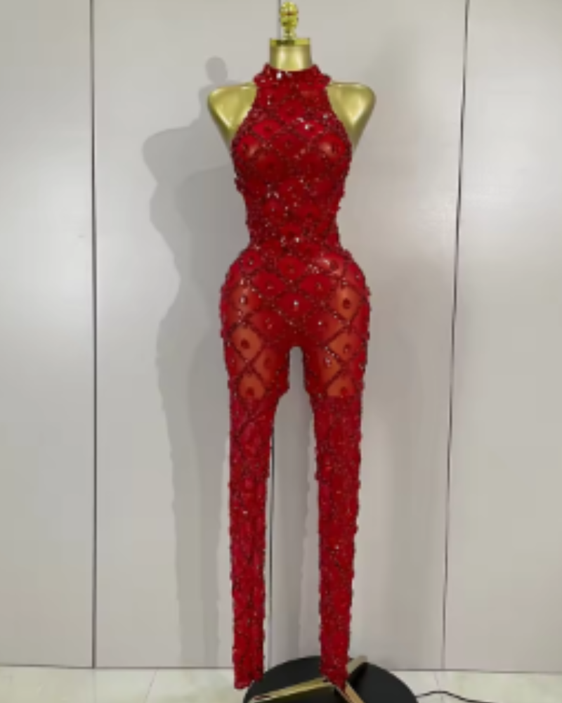 Step into the spotlight with the Teyah Sparkly Red Diamonds Mesh See Through Jumpsuit. This stunning piece features radiant red diamond embellishments over a sheer mesh design that hugs every curve. Ideal for prom, red-carpet events, or glamorous celebrations, Teyah’s look is all about fearless beauty and undeniable confidence.