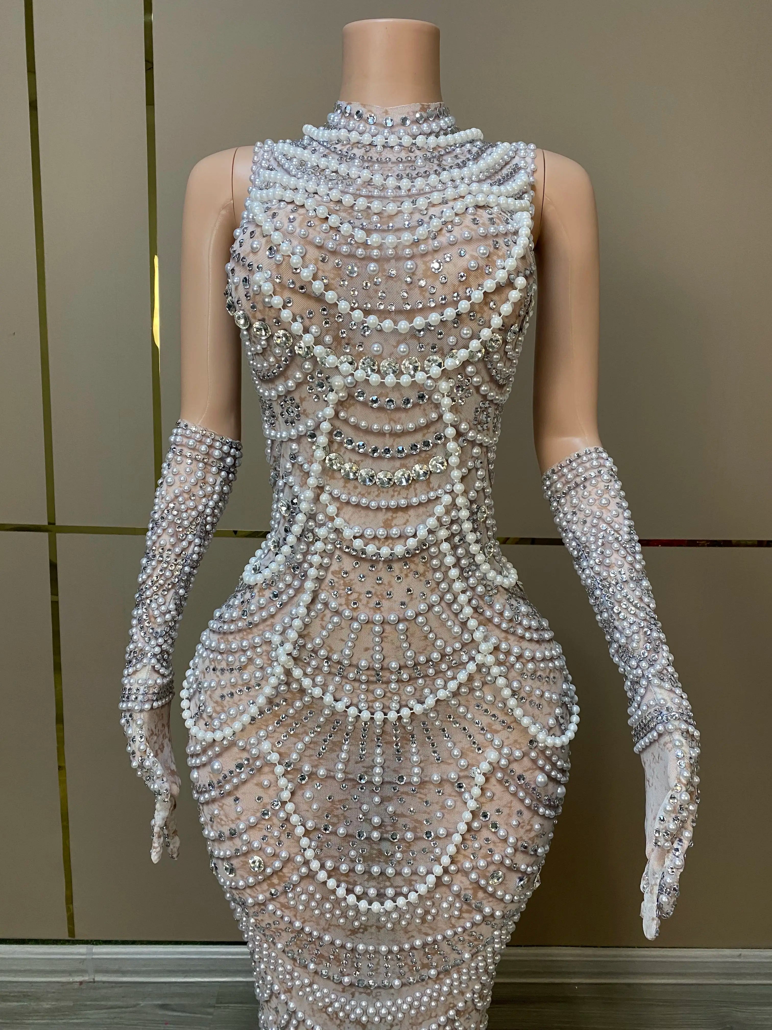 Turn the night into your runway with the Noelle Pearl Rhinestone Prom Dress, a dazzling masterpiece made for the spotlight. Featuring shimmering rhinestones, delicate pearls, and elegant mesh detailing, this gown comes with matching gloves for an extra touch of luxury. Perfect for prom, evening galas, or red-carpet moments that call for pure glamour.