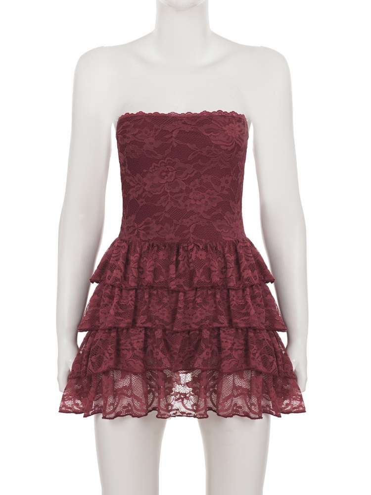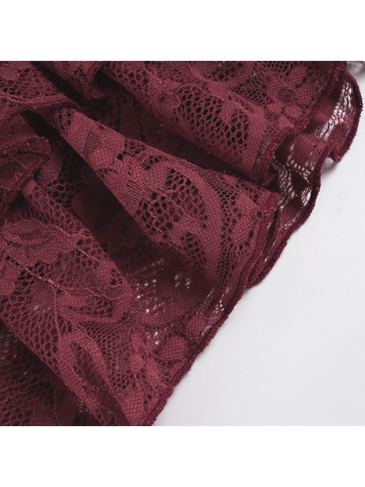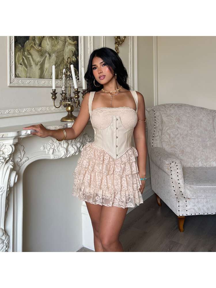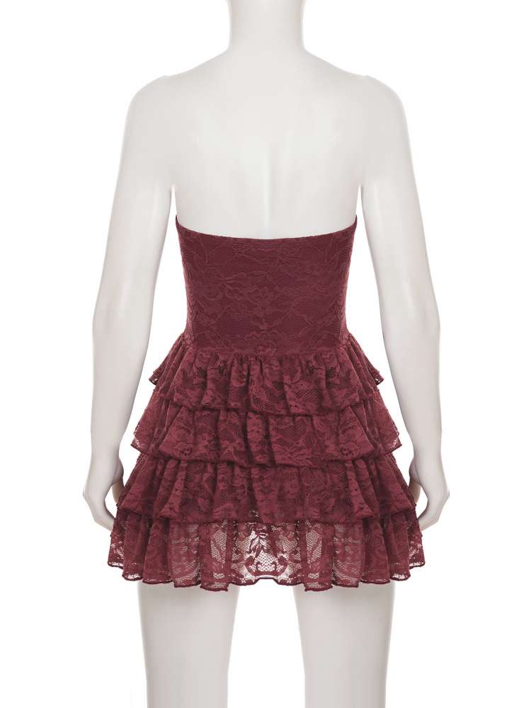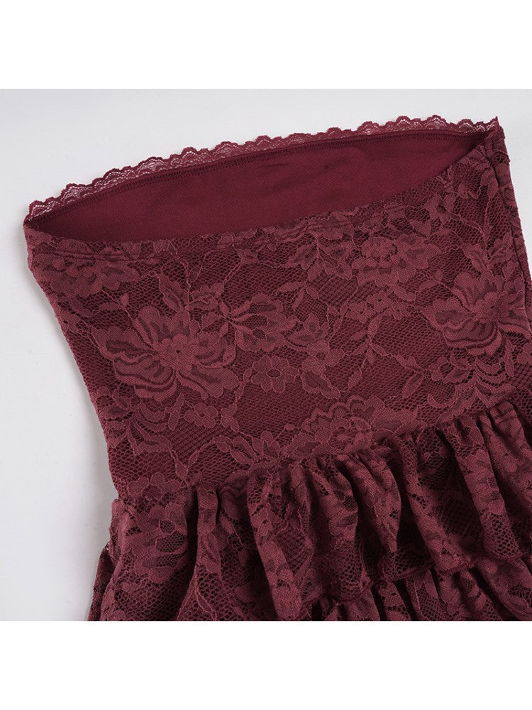 Lace Detail Fluffy Bareback Bodycon Skirt 2pcs Sets