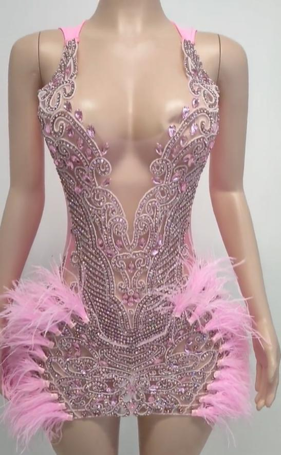 Sexy Blue Feather Rhinestone Mini Birthday Dress is designed to turn heads. Adorned with sparkling rhinestones and playful feather details, this mini dress hugs your curves while delivering bold, eye-catching glamour. Perfect for birthday parties, photoshoots, club events, and nights when you want to shine.