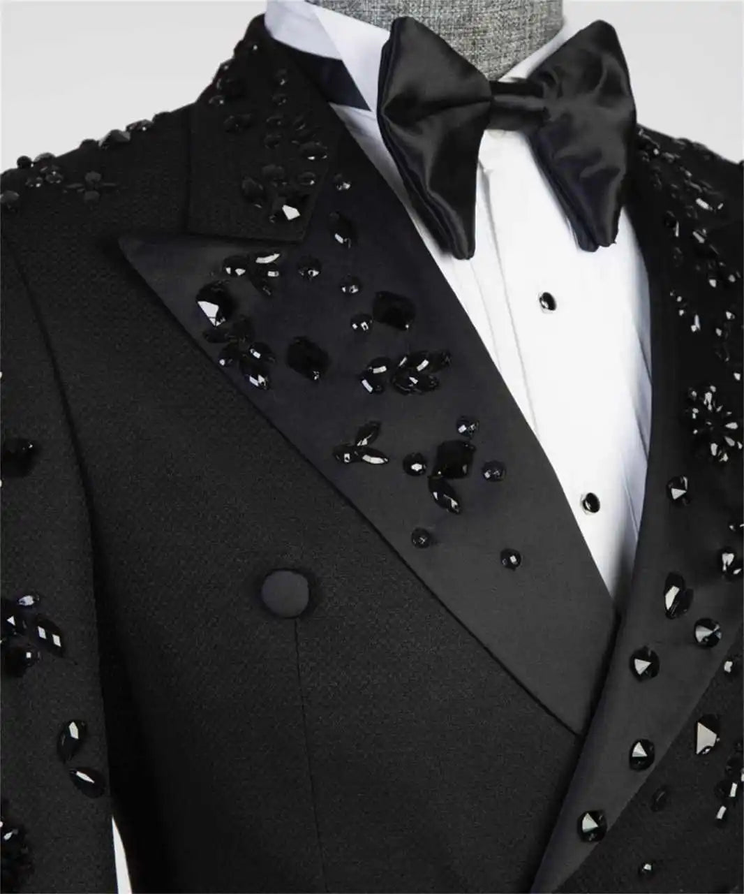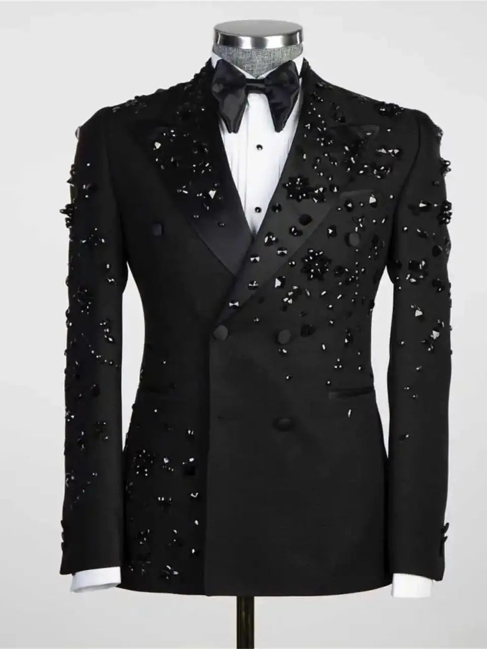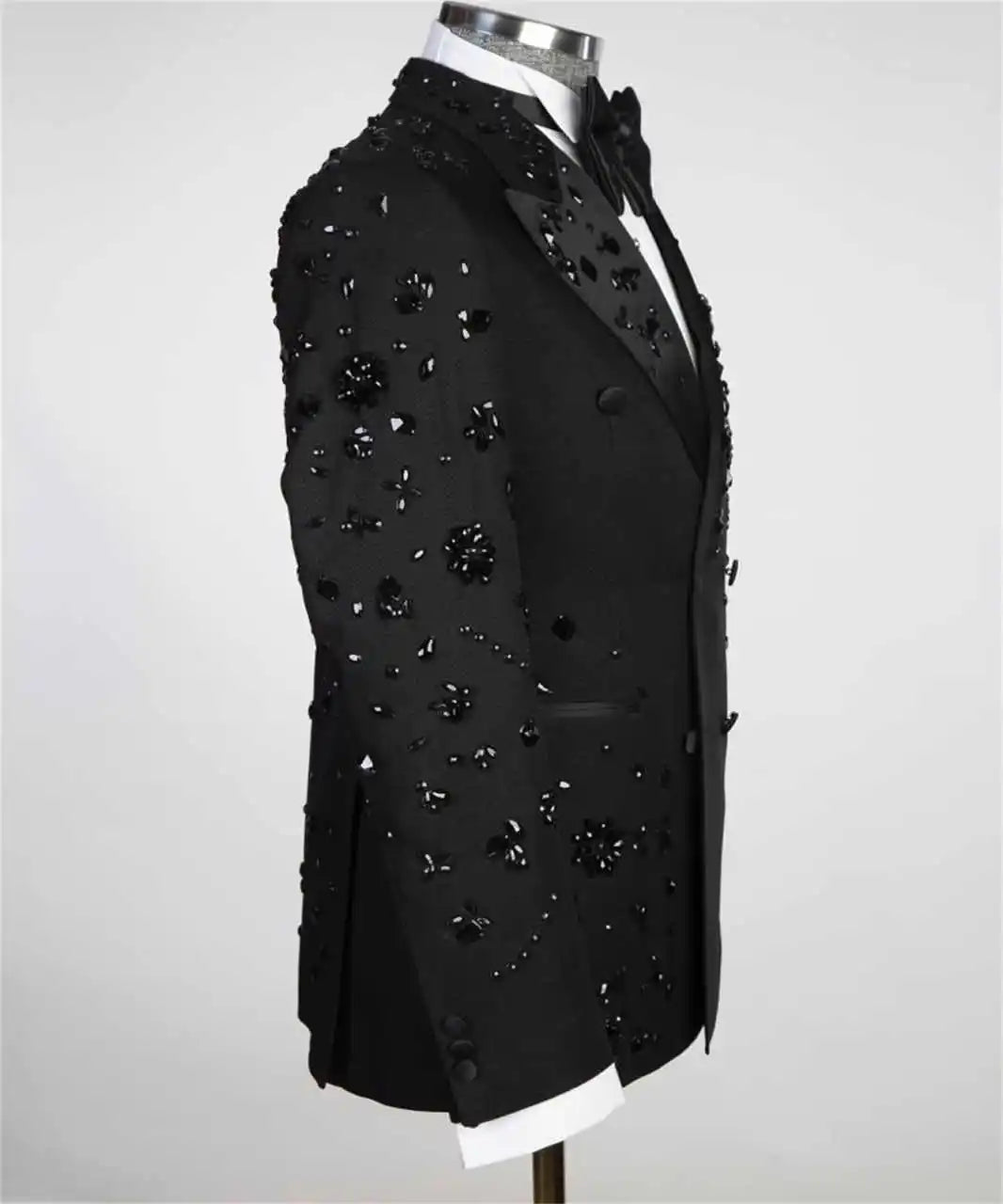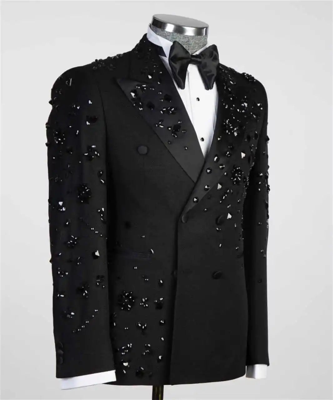Luxury embellished double-breasted men’s suit and pants set for formal events or stage wear
