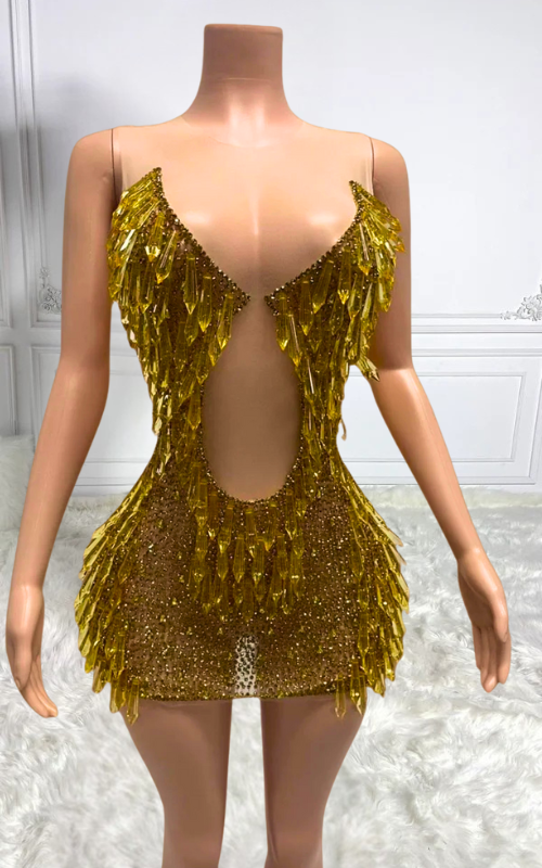 Dazzle with confidence in this sexy sheer mesh crystal dress—your go-to choice for unforgettable nights out.
