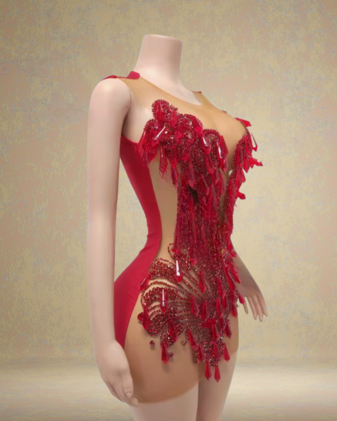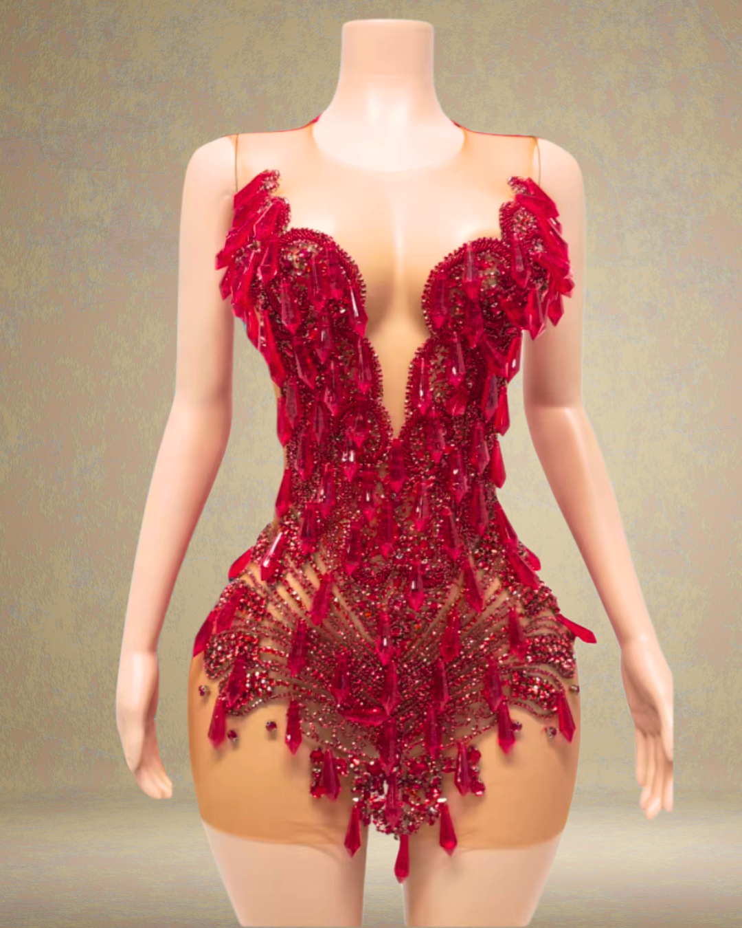 This birthday dress is pure radiance. Designed with waterdrop-shaped rhinestones that shimmer like dew in motion, it features a sleek silhouette that hugs the body with sculpted precision. The neckline is clean and confident, while the sparkle delivers high-impact glamour. Perfect for birthday parties, club nights, or any event that demands luminous presence, this piece blends fluid shine with bold femininity.