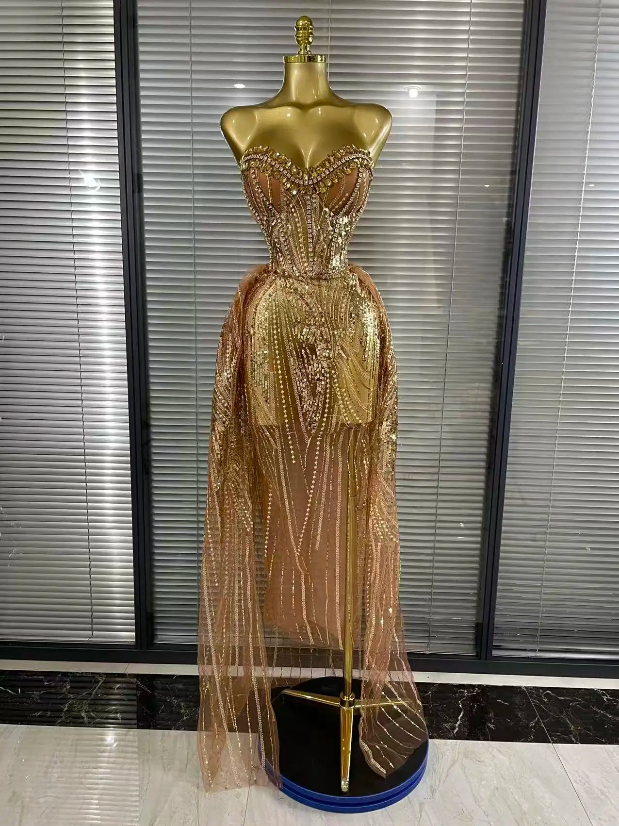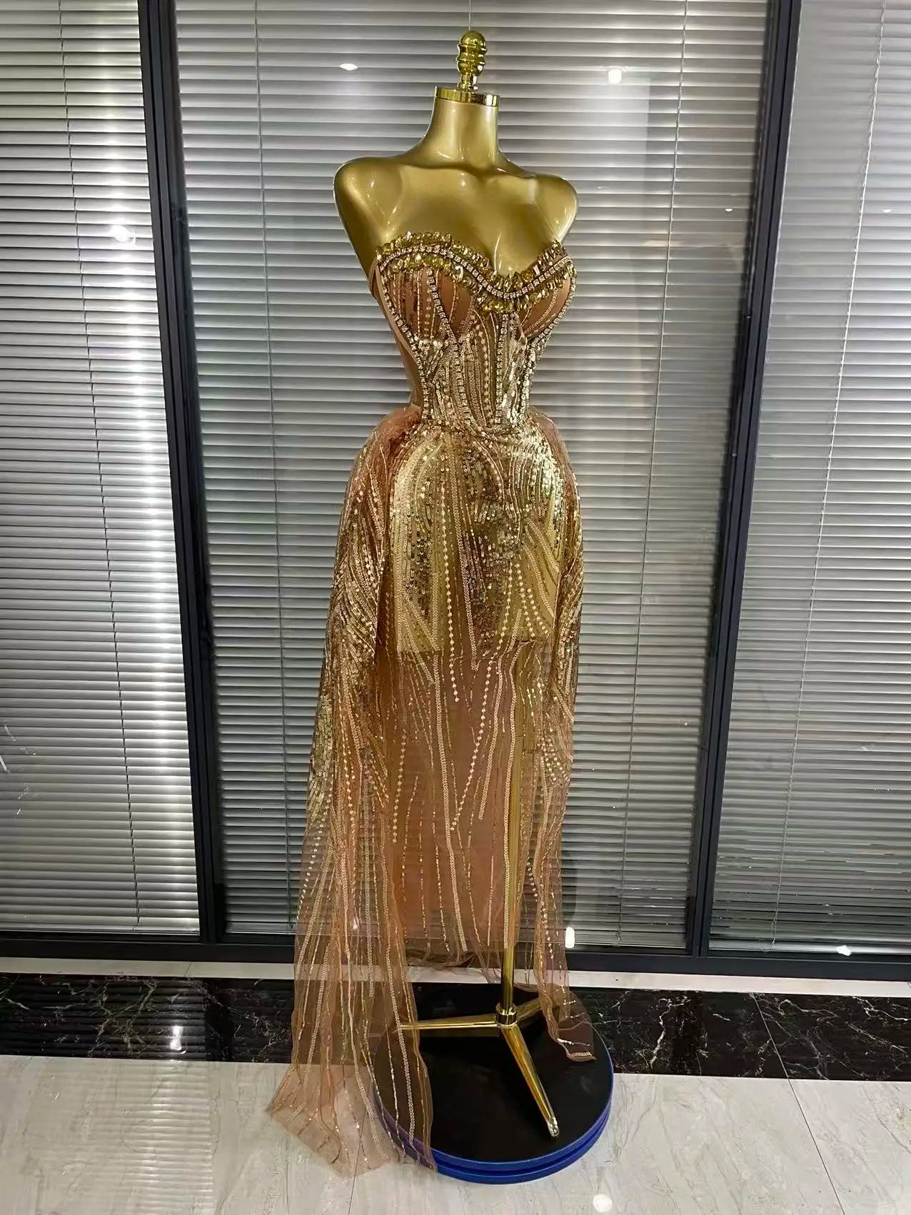 Hailey is elegance turned all the way up. This Sexy Strapless Mesh Crystal Maxi Dress features a sheer mesh base adorned with sparkling crystal details that glow under every light. The strapless neckline keeps it clean and confident, while the see-through silhouette adds bold, fashion-forward drama. Perfect for birthdays, evening events, stage moments, and nights where subtle just is not the vibe.