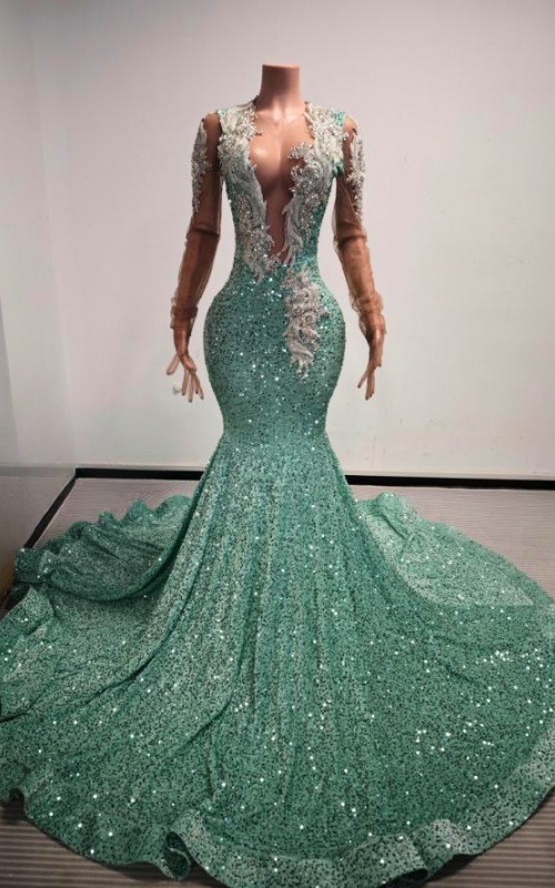 Amanda is elegance with a cool glow. This Mint Green Sequin Beaded Rhinestone Long Prom Dress features shimmering sequins, intricate beading, and rhinestone accents that catch the light with every step. The long, flowing silhouette creates a graceful finish while the mint green tone feels fresh, modern, and effortlessly luxe. Perfect for prom, formal nights, galas, and statement entrances.