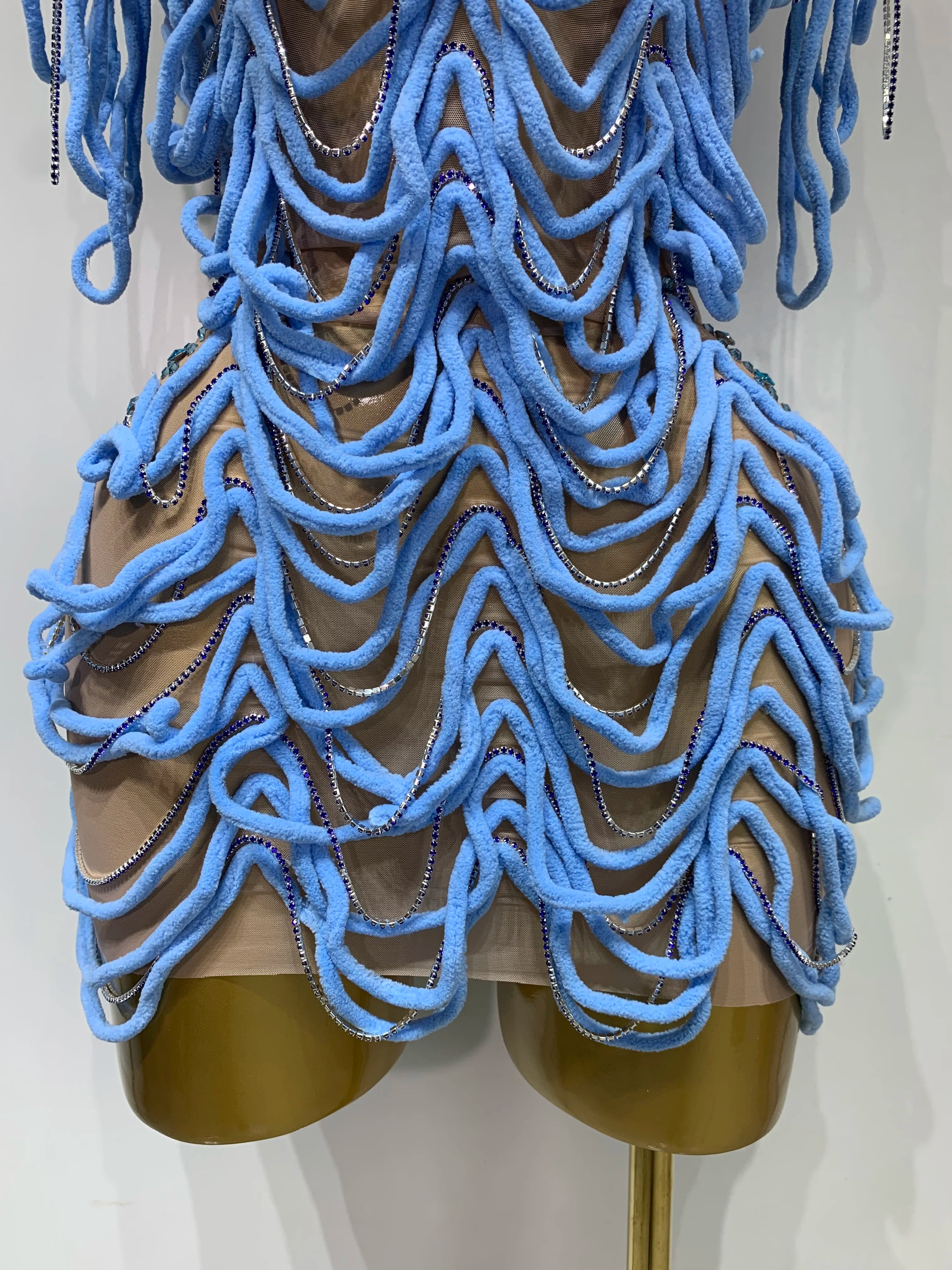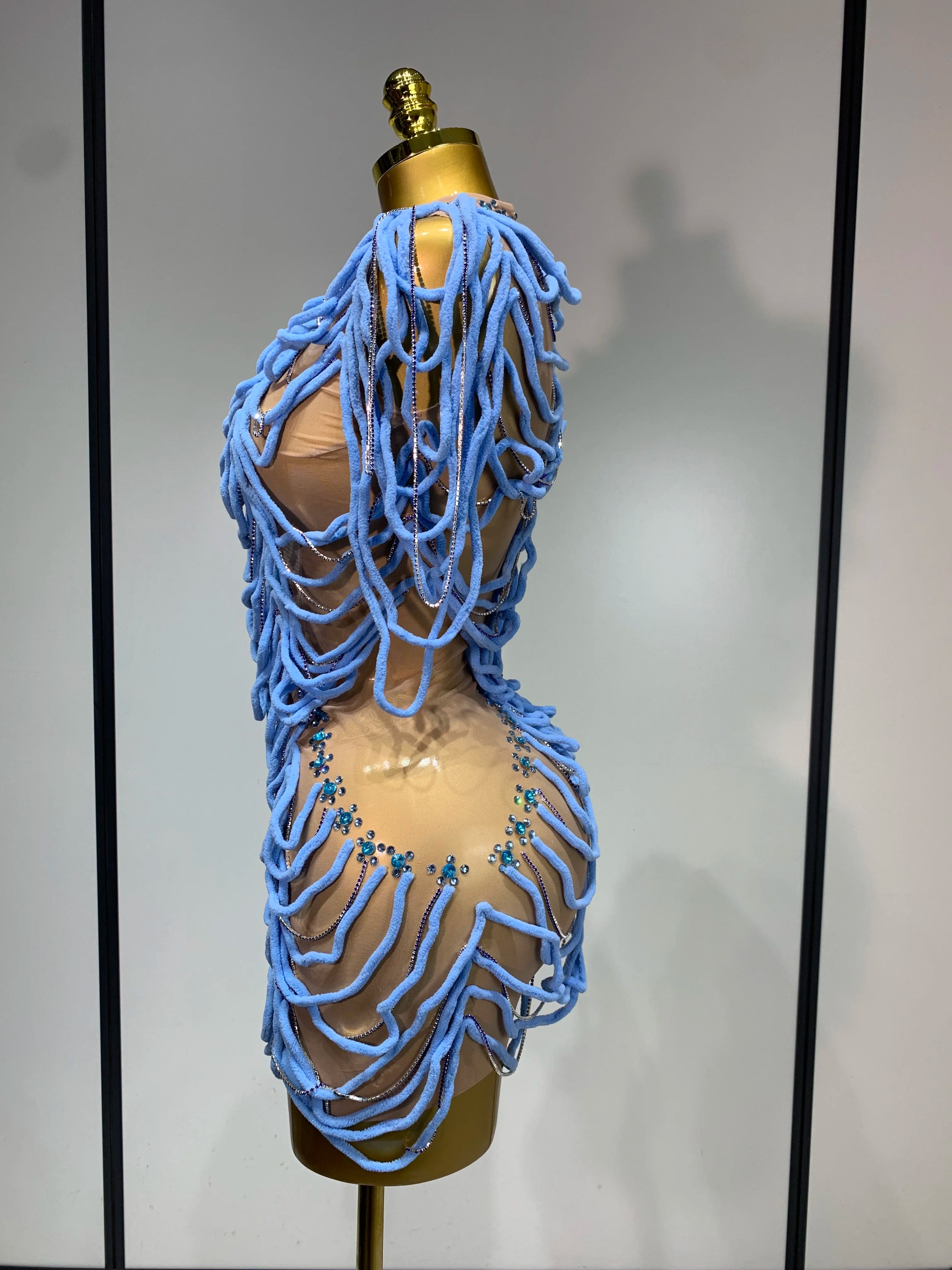 Brielle Sexy Mesh See Through Rhinestone Chain Dress
