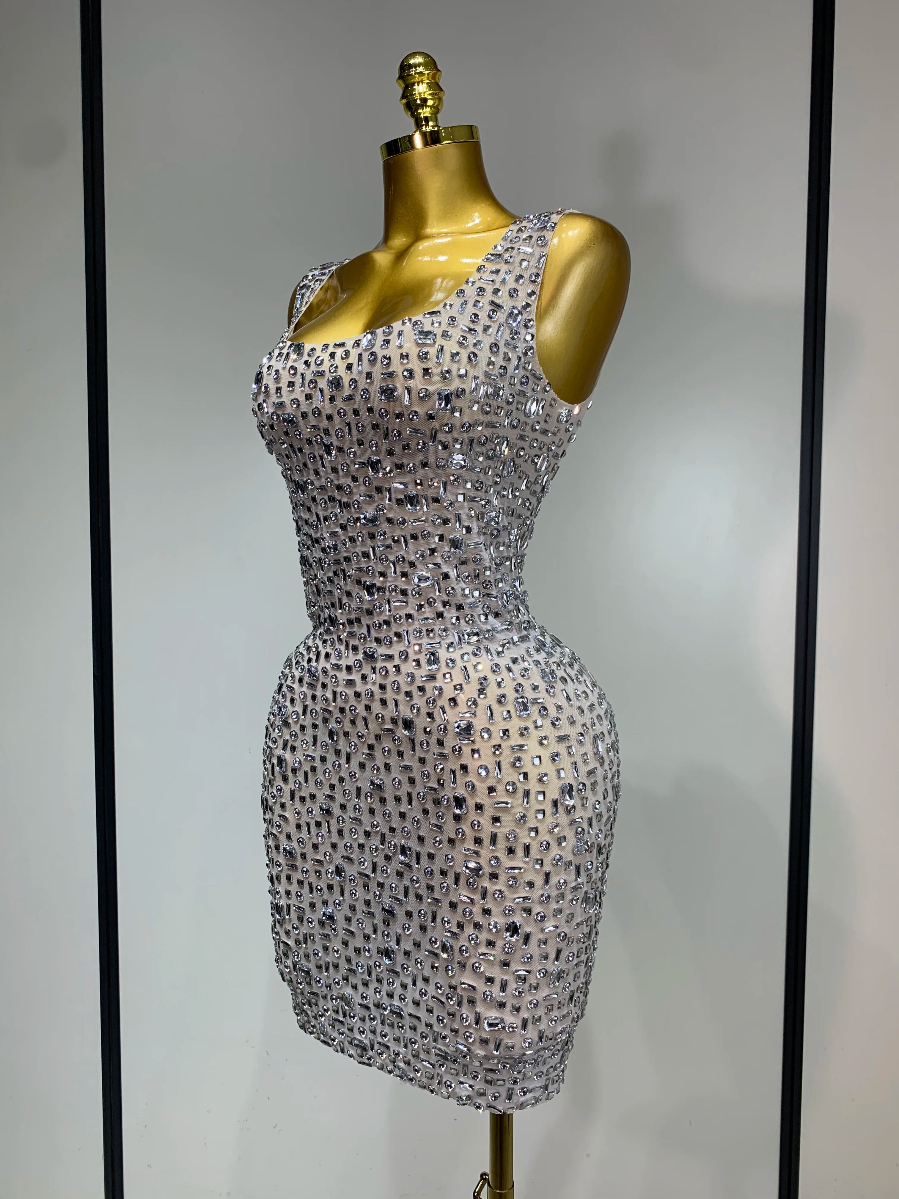 Carole luxury sparkly rhinestone sexy mesh see through short dress