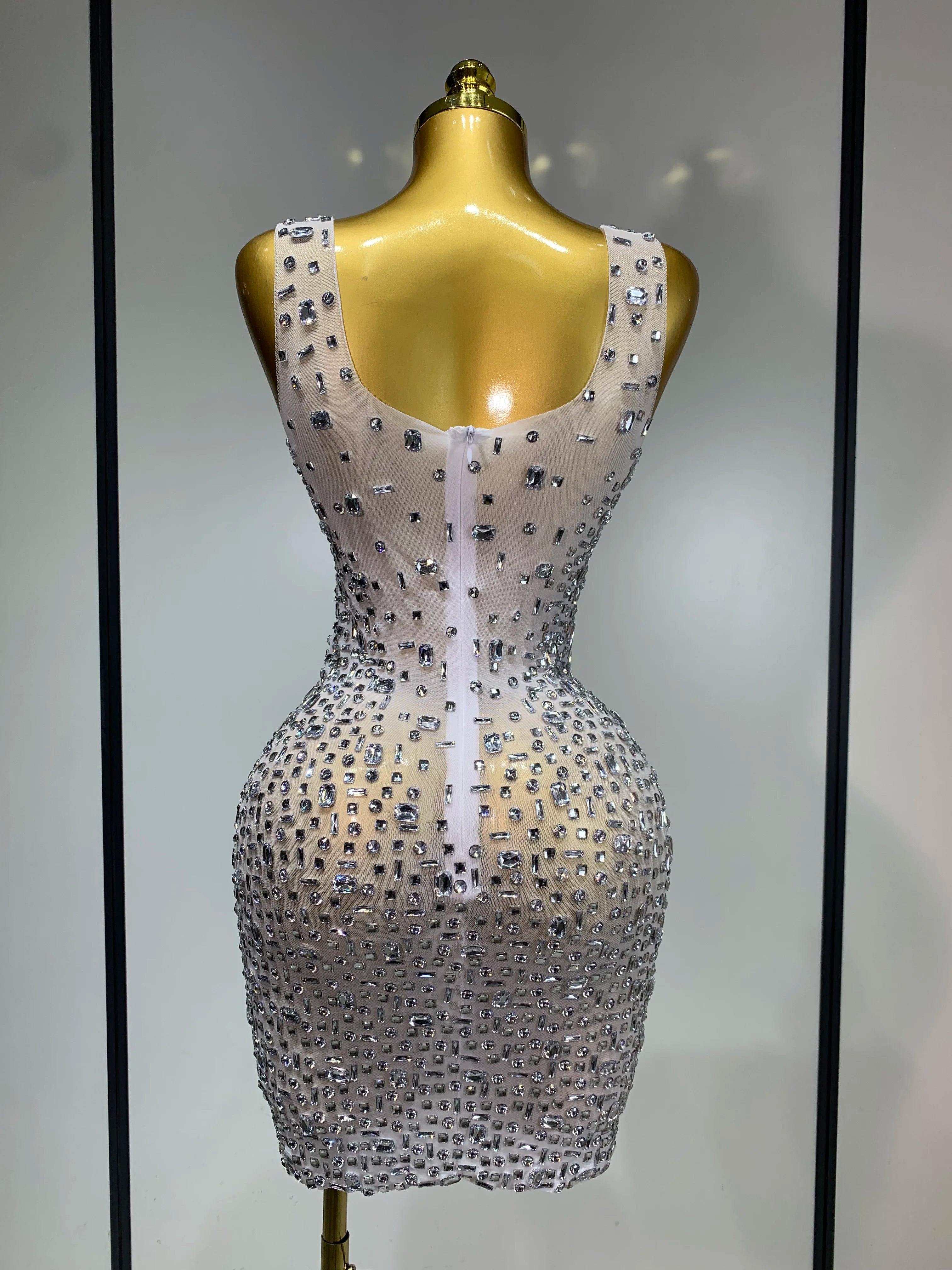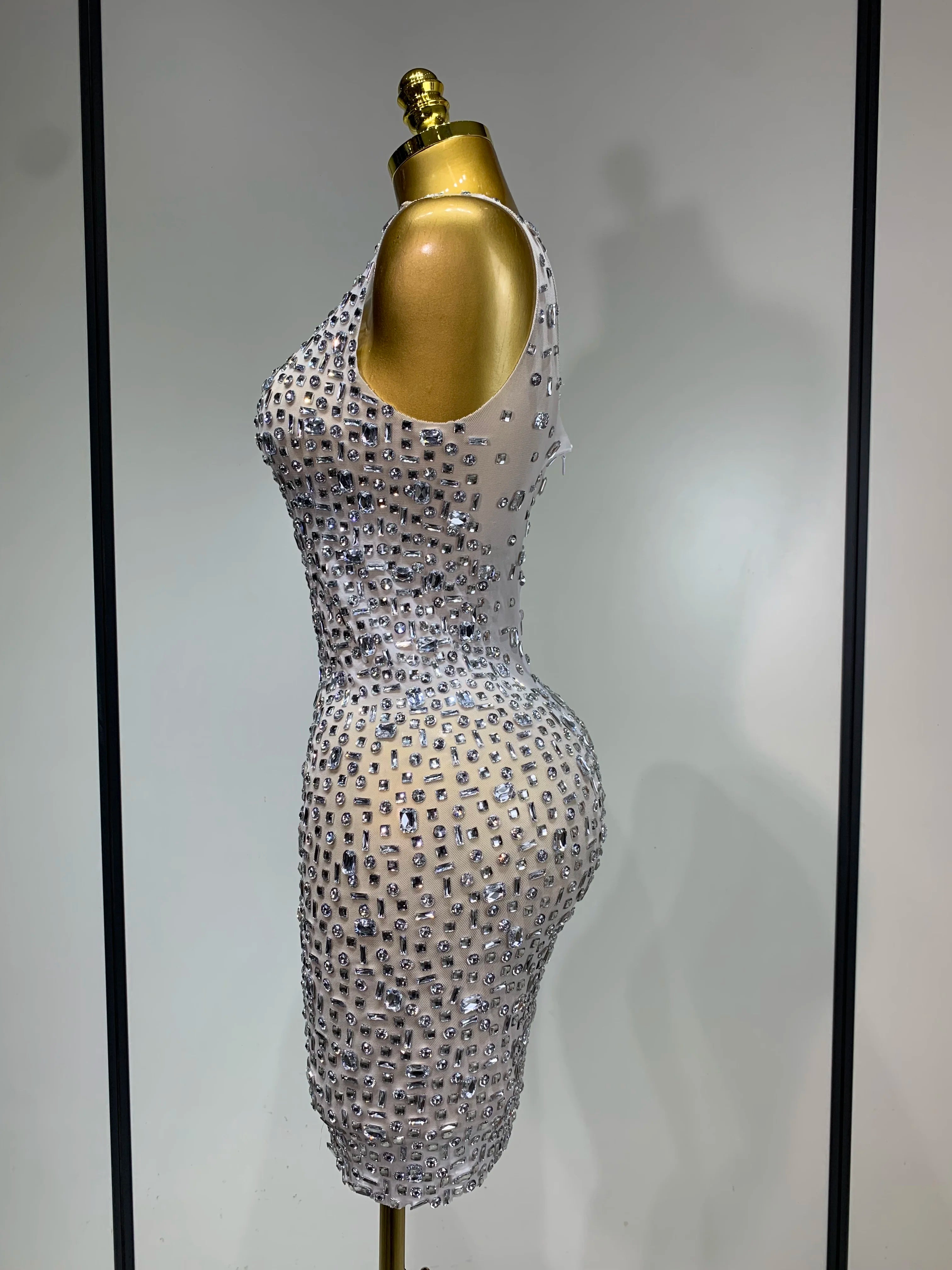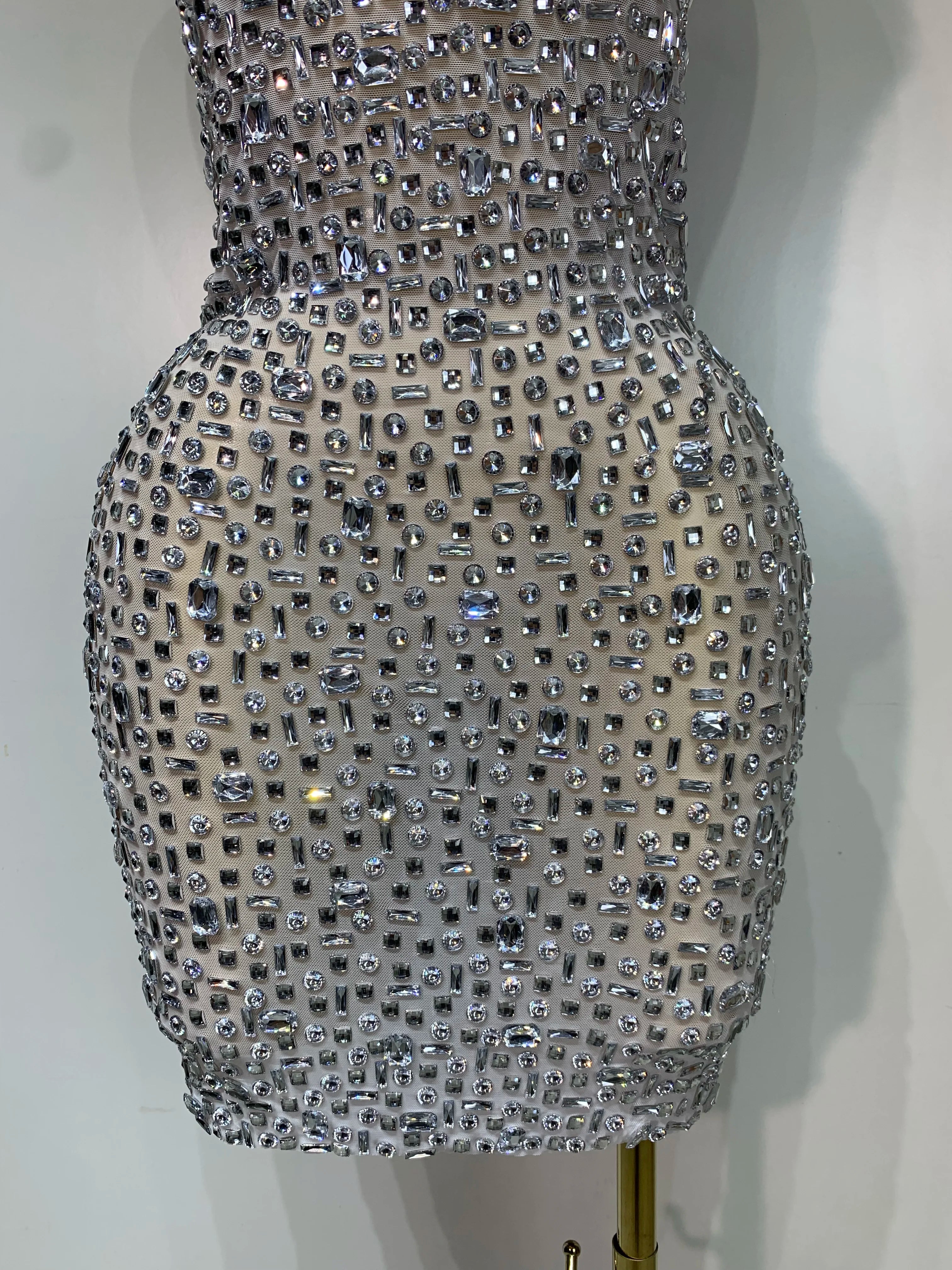 Carole is pure luxury with a fearless edge. This Sparkly Rhinestone Sexy Mesh Dress features a sheer mesh base layered with shimmering rhinestones for maximum shine. The short silhouette shows off your legs while the see-through design delivers confident, party-ready energy. Perfect for birthdays, nights out, club looks, and spotlight moments.