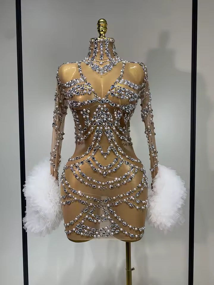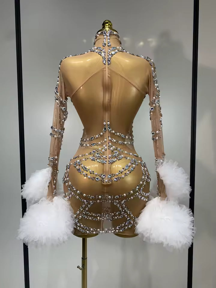 Shine with confidence in this sexy turtleneck mini dress, designed from smooth polyester fabric for a sleek, body-hugging fit. Featuring long sleeves, a zipper closure, and sparkling diamond embellishments, this solid sheath silhouette perfectly blends glamour and sophistication. Ideal for junior women, this all-season dress is the ultimate choice for parties, clubs, or evening events.
