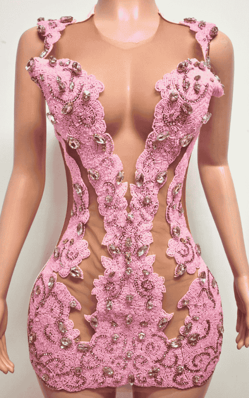 Step into elevated glamour with this hand beaded lace mini dress finished with precision crystal embellishments. Designed for luxury events, cocktail parties, birthdays, and formal nightlife settings, this piece blends delicate lace texture with light catching crystal details for a high impact finish.