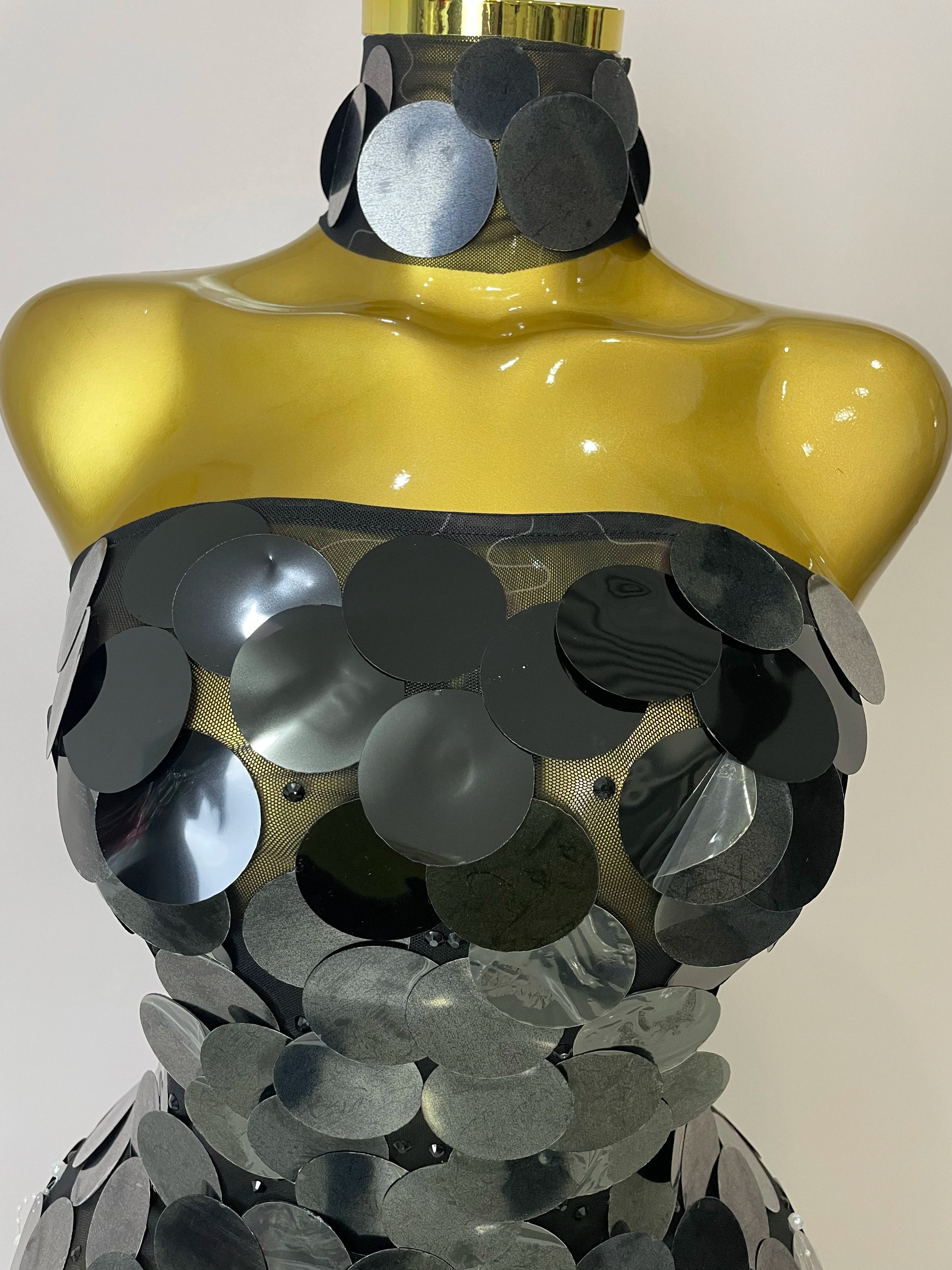 Alana sparkly pearl sequin backless floor-length evening dress with shimmering details.