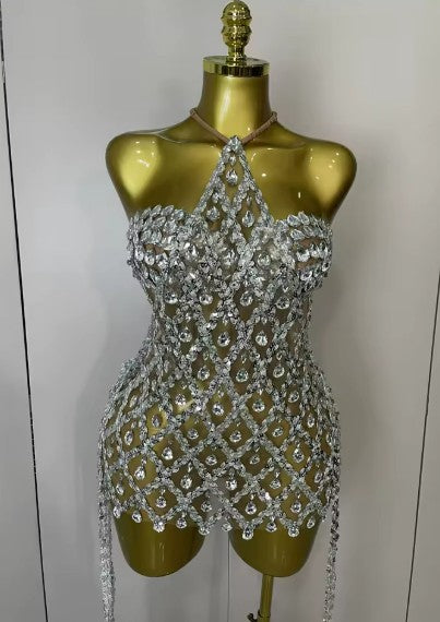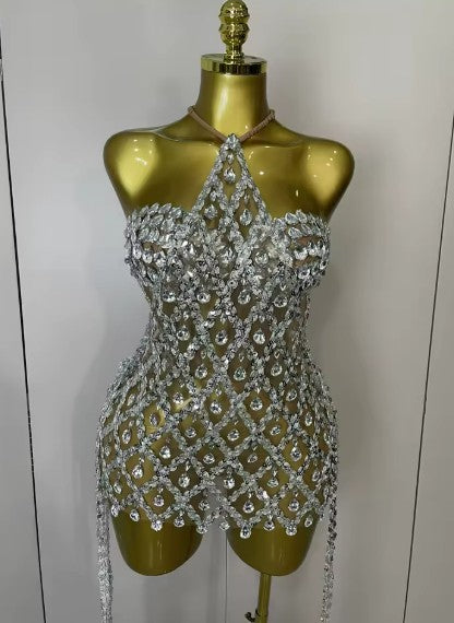 Shine bright in the Kyra Sparkly Sequin Diamond Mesh Two-Piece Dress Set. Featuring a dazzling mesh top covered in sequins and paired with a sleek skirt, this 2025 design is sexy, elegant, and perfect for evening parties, birthdays, or photoshoots. Make every entrance unforgettable with Kyra’s glamorous, show-stopping style.