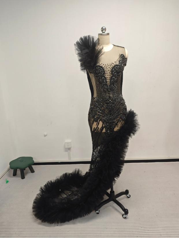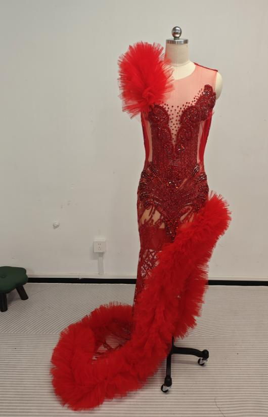 Make your entrance unforgettable in this Pink Beaded Tulle Evening Gown, designed with shimmering rhinestone accents and a dramatic layered ruffle skirt. The high split detail adds a bold, modern edge, while the soft mesh tulle layers create a flowing, princess-inspired silhouette. Perfect for prom, galas, and red-carpet occasions, this gown blends elegance, sparkle, and sophistication.