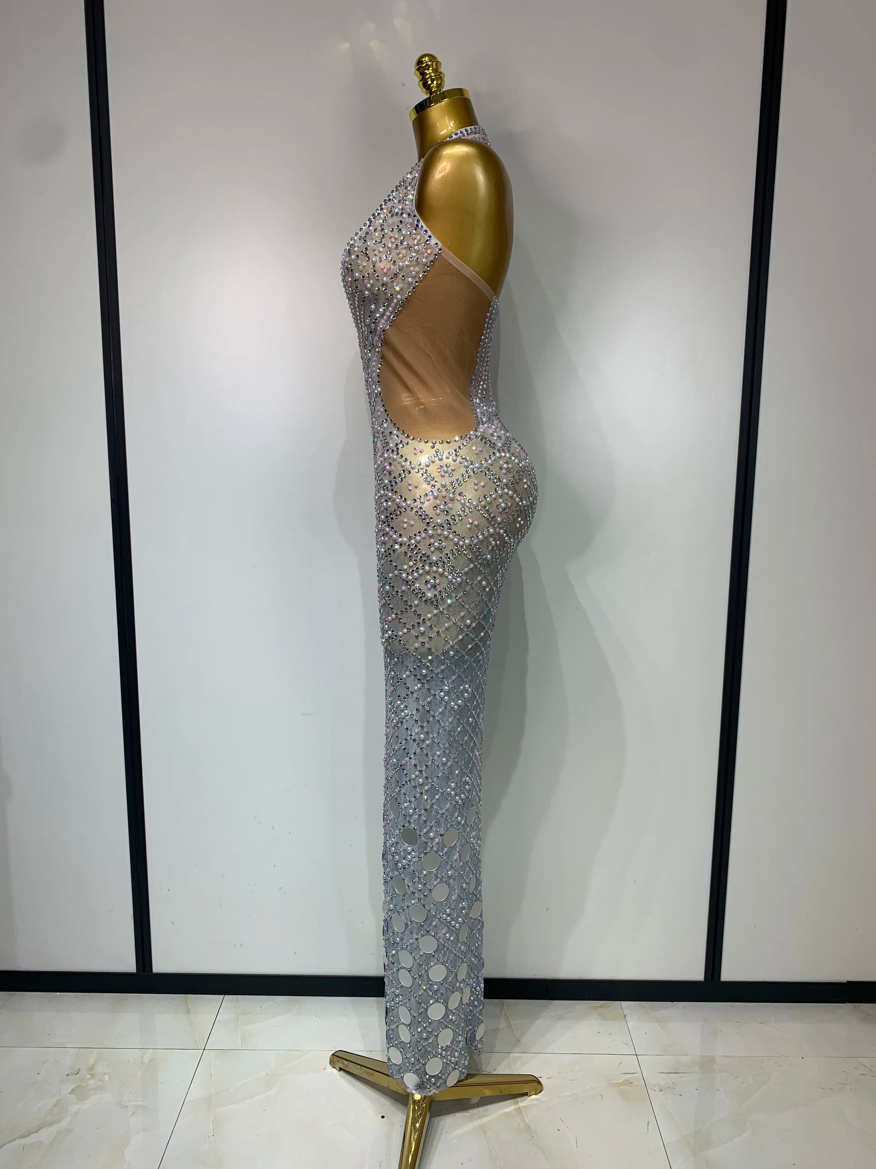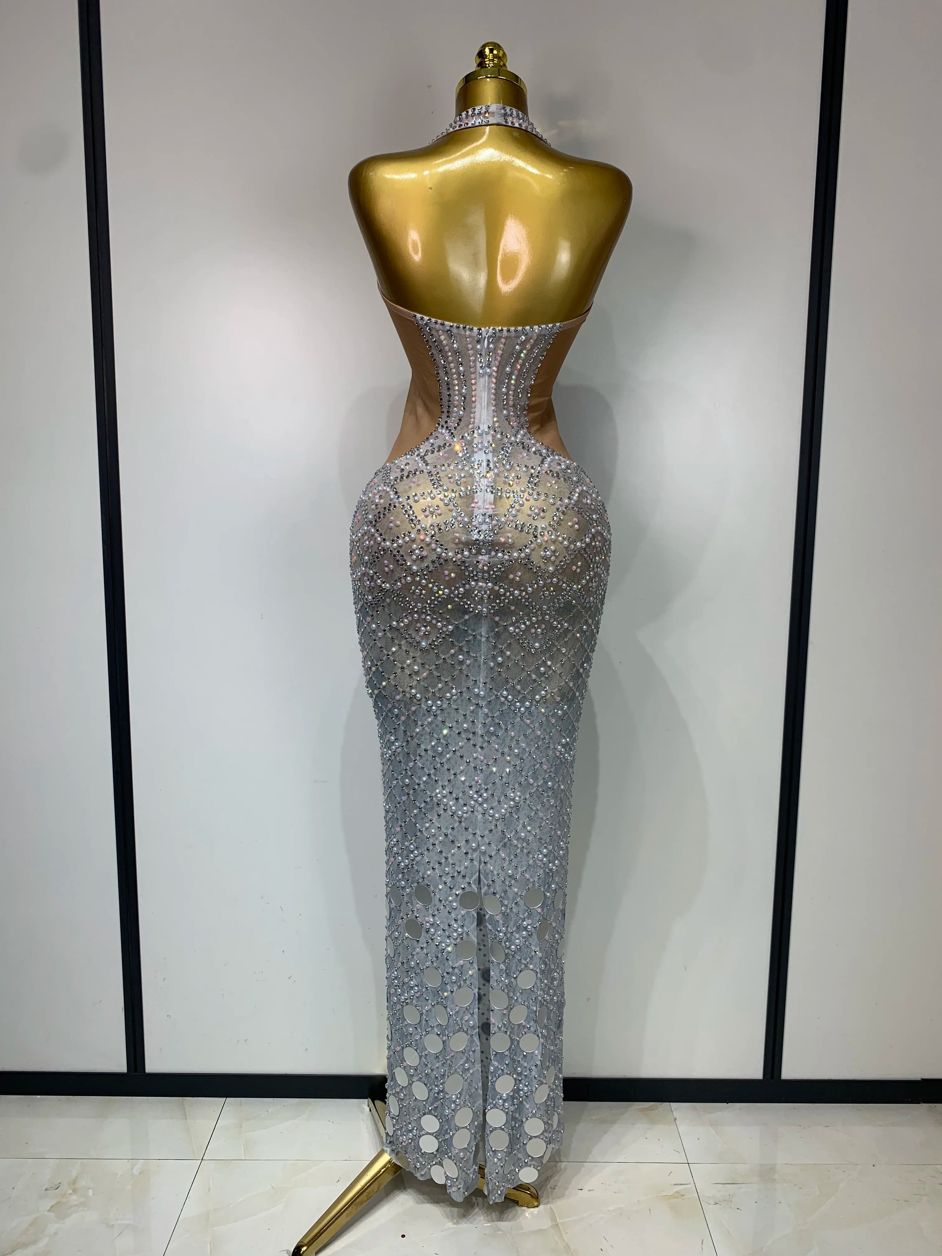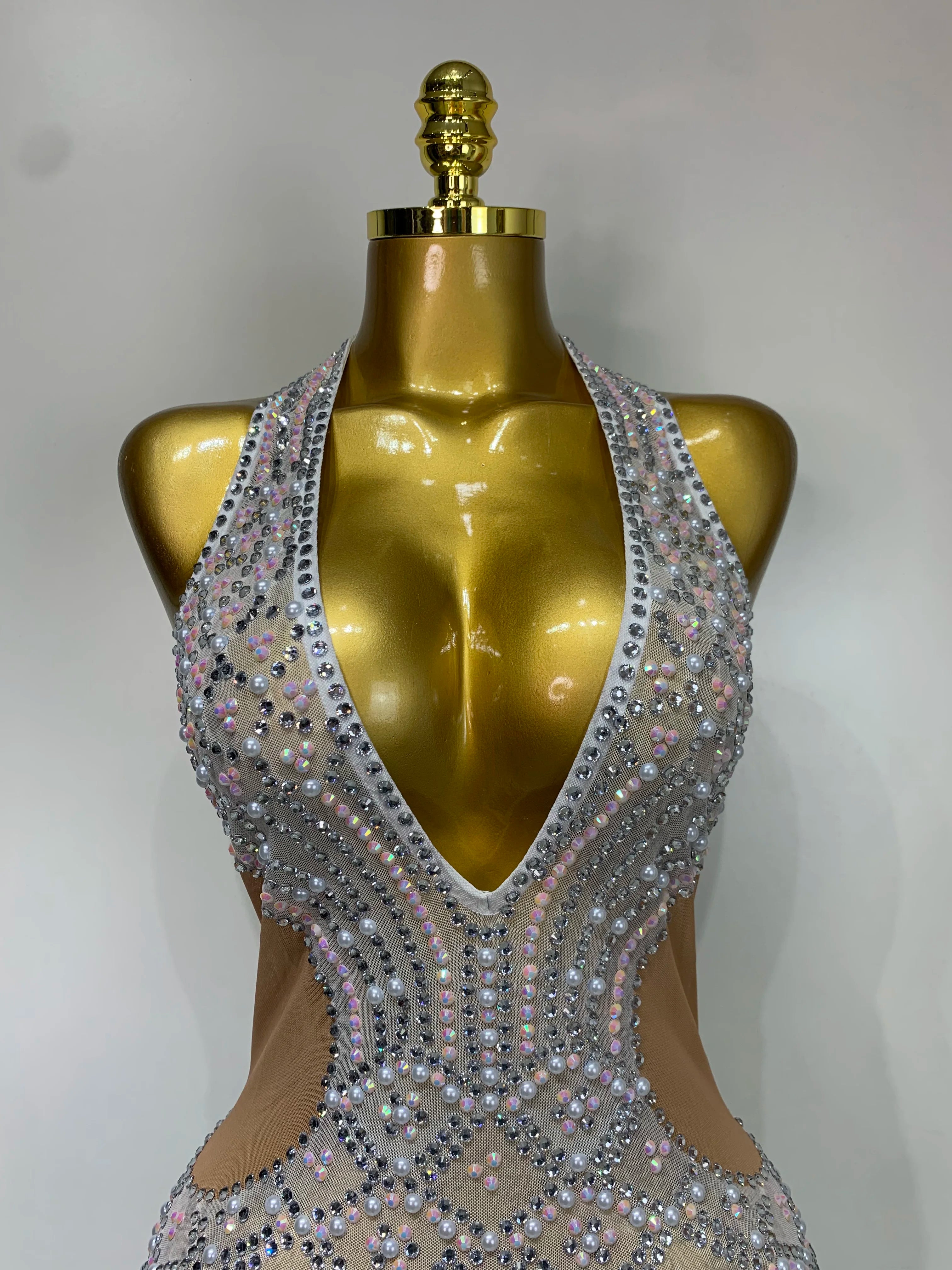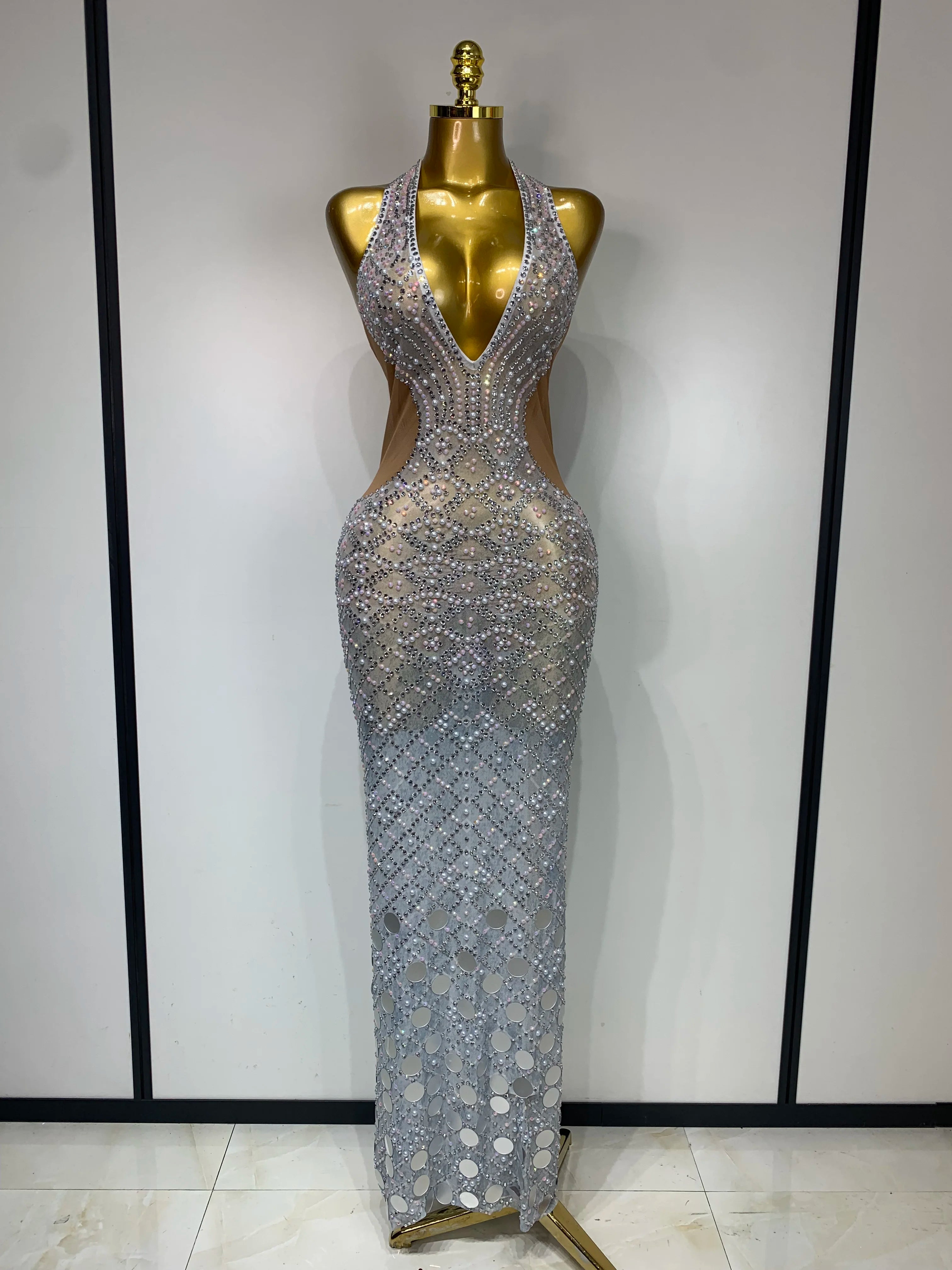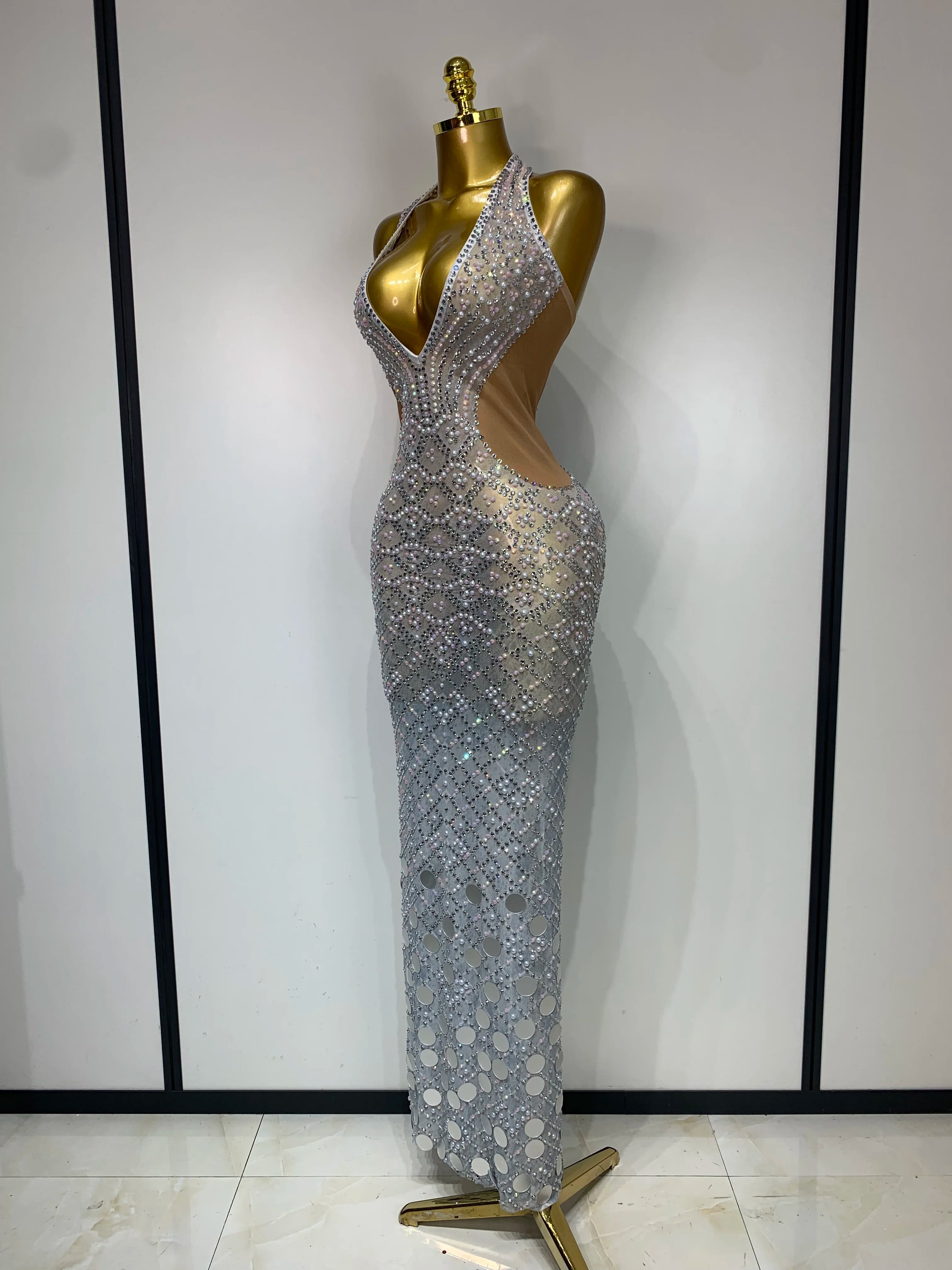 Charm is made to turn heads from every angle. This Sparkly Rhinestone Halter Mesh Dress features a deep V-neckline, backless design, and sheer mesh layered with shimmering rhinestones. The halter cut highlights the shoulders while the open back brings confident, party-ready energy. Perfect for birthdays, nights out, club looks, and events where sparkle is non-negotiable.