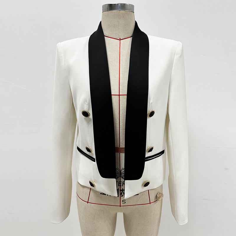 Color-Blocked Single-Breasted Women’s Short Tuxedo Jacket Luxury Blazer