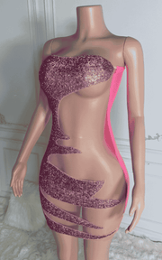 Glow in warm rose gold sparkle with this rhinestone illusion bodycon birthday dress. Designed with a sheer mesh halter neckline, the silhouette hugs the body while scalloped crystal detailing creates soft, shimmering texture that moves with every step.