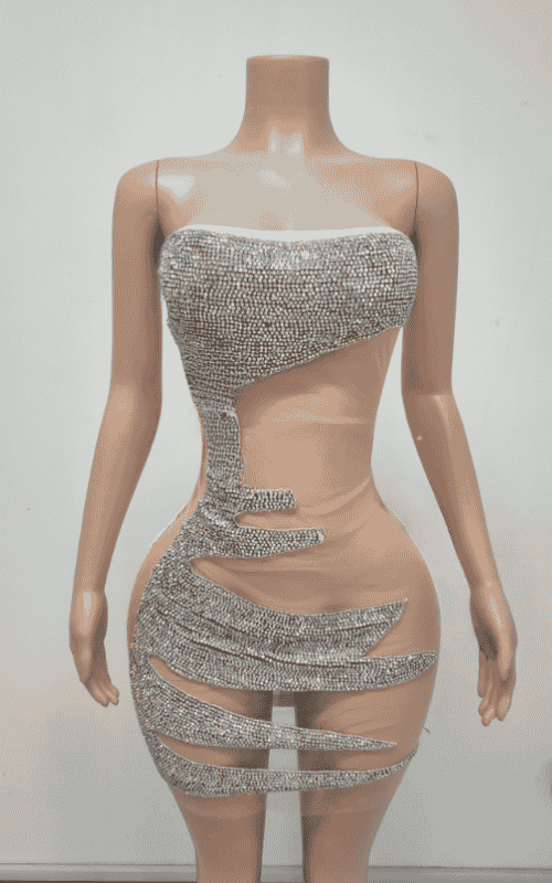 The illusion construction highlights the figure without feeling heavy, blending delicate mesh with dense rhinestone placement for a balanced luxury finish. Perfect for birthdays, club nights, photoshoots, and celebration events, this dress delivers statement shine with refined structure.