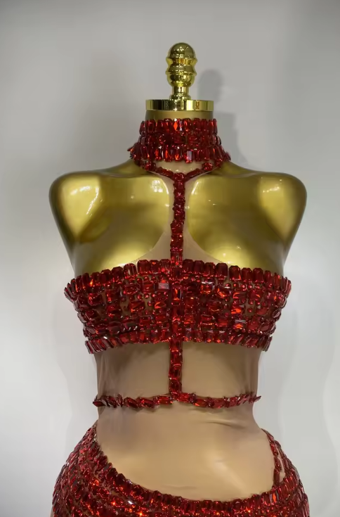 Amira is sparkle with confidence. This two piece evening set is fully decked in shimmering sequins that move with you and catch every flash, every stare. The fitted silhouette brings the heat while keeping things sleek and party-ready. Perfect for birthdays, night outs, events, and moments where blending in is absolutely not the plan.