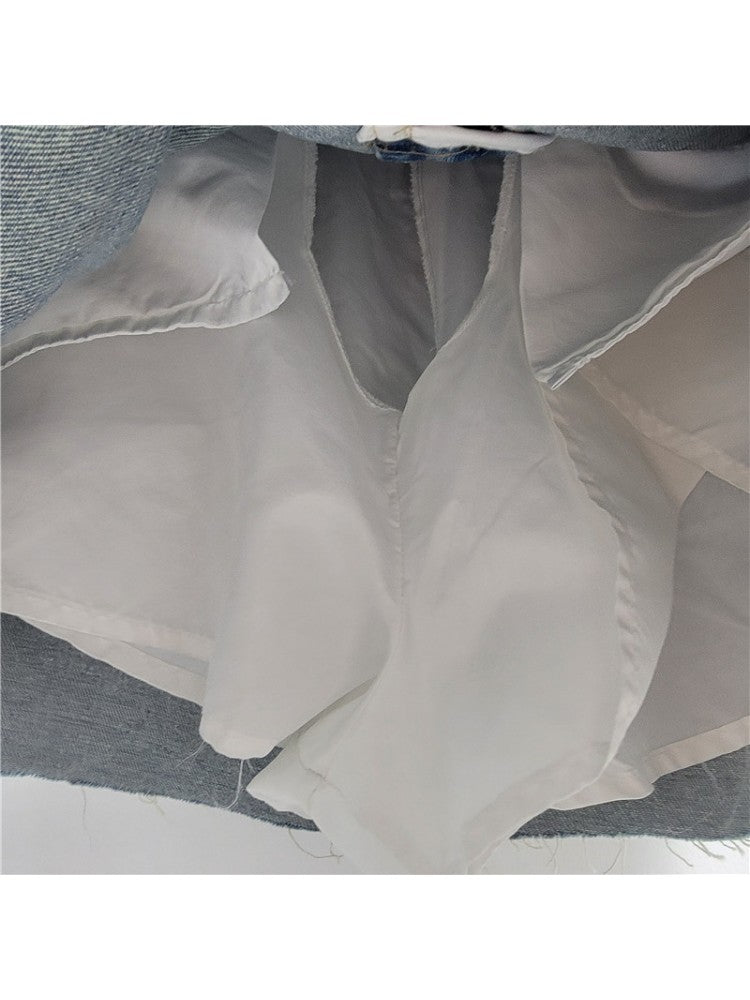 Cartoon Bear Decor Washed Denim Skirts