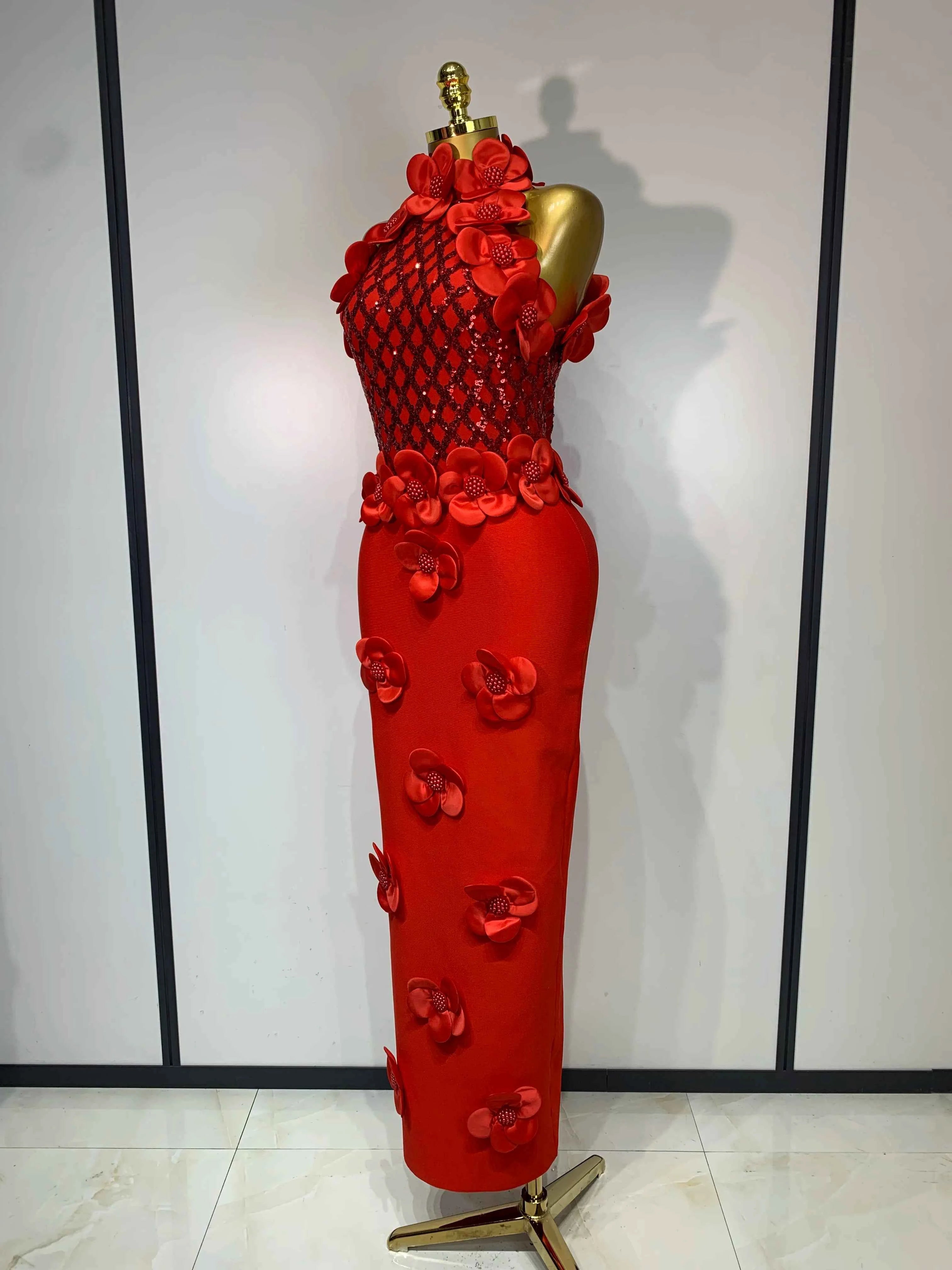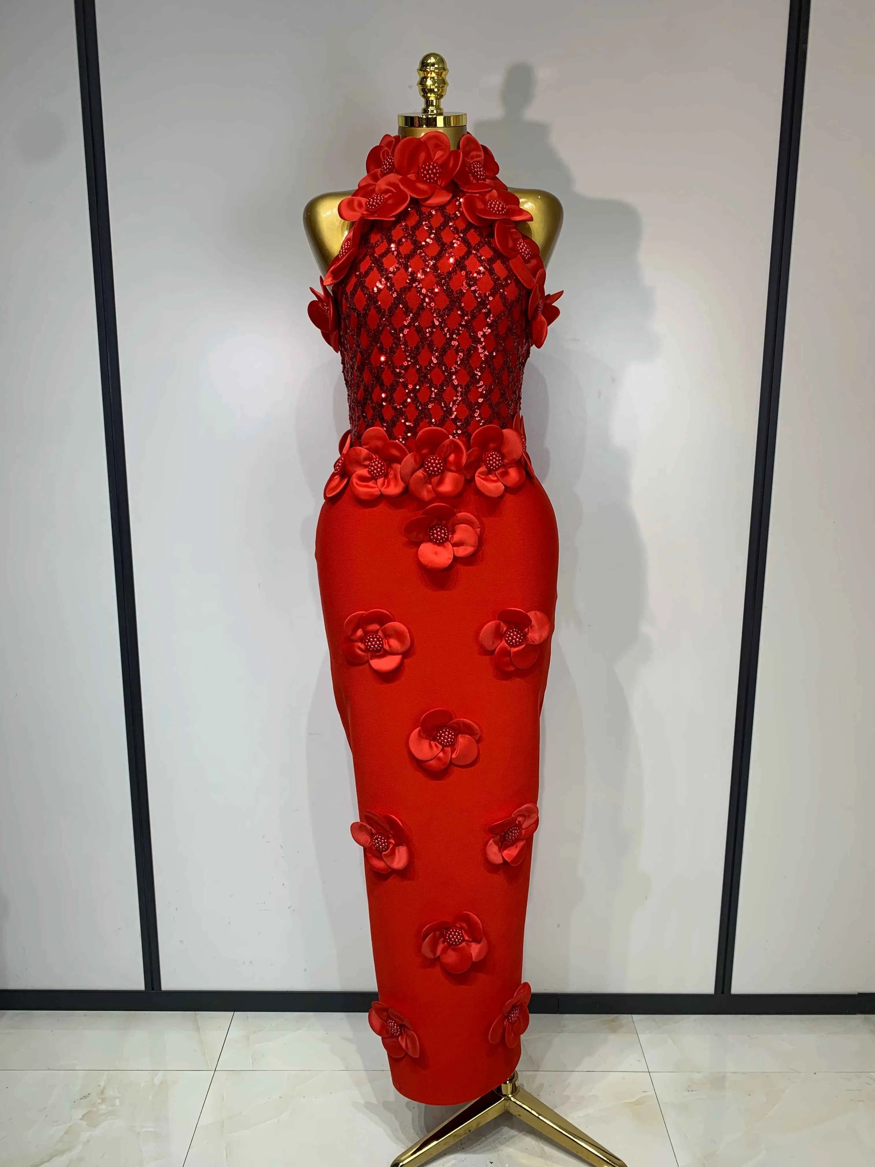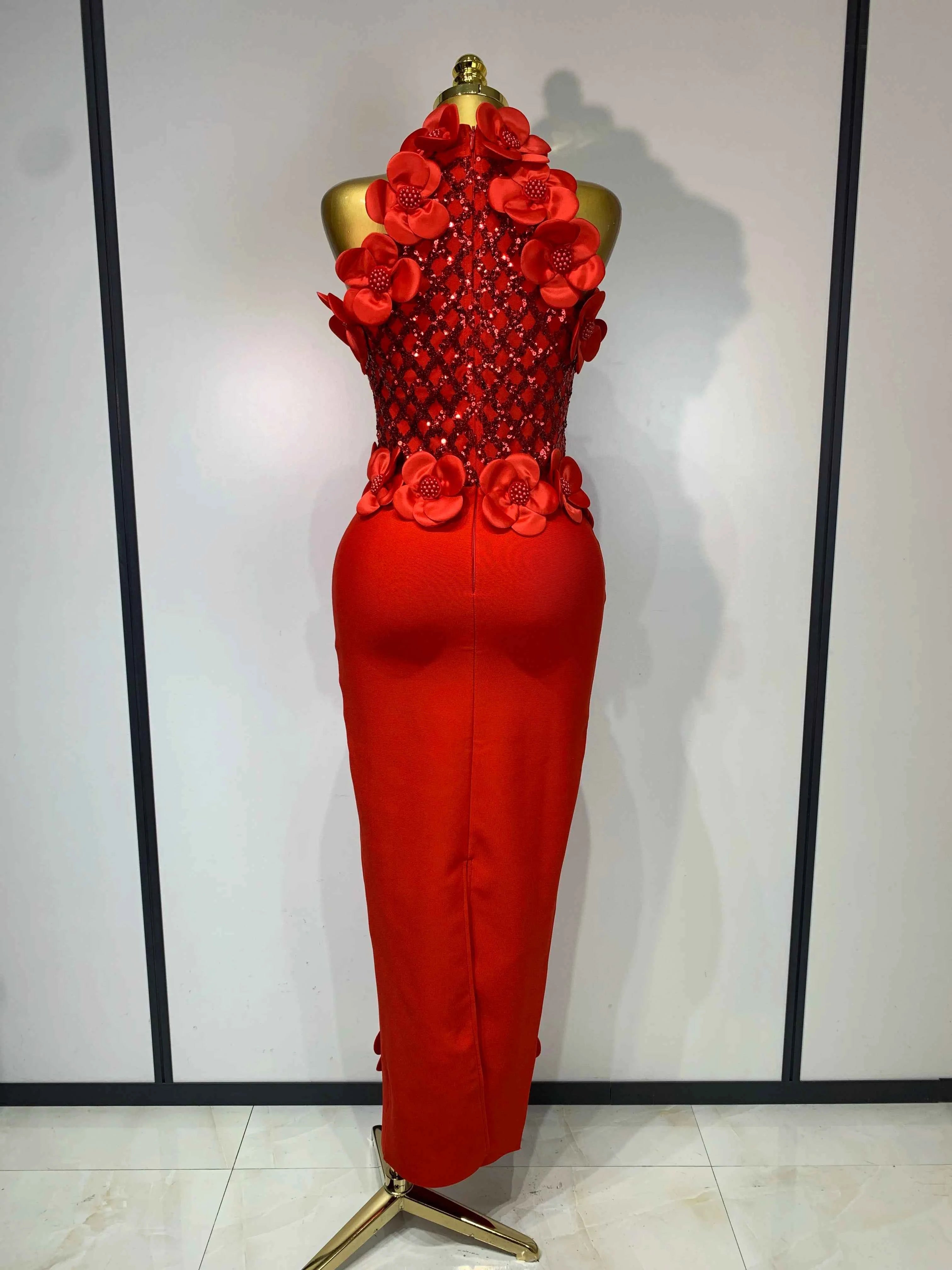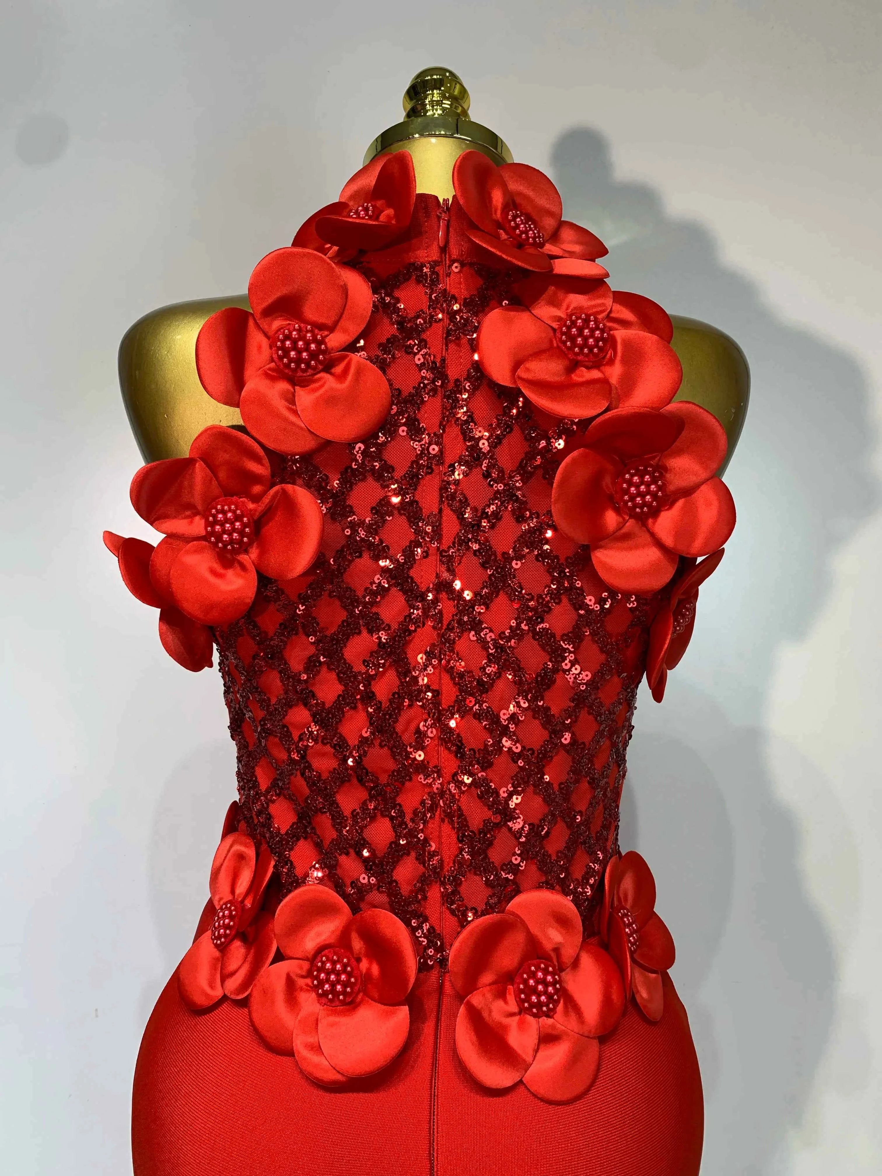 Women Sexy Sleeveless Flower Beading Bodycon Bandage Dresses 2026 Celebrity Elegant Cocktail Luxury Birthfay Evening Party Dress