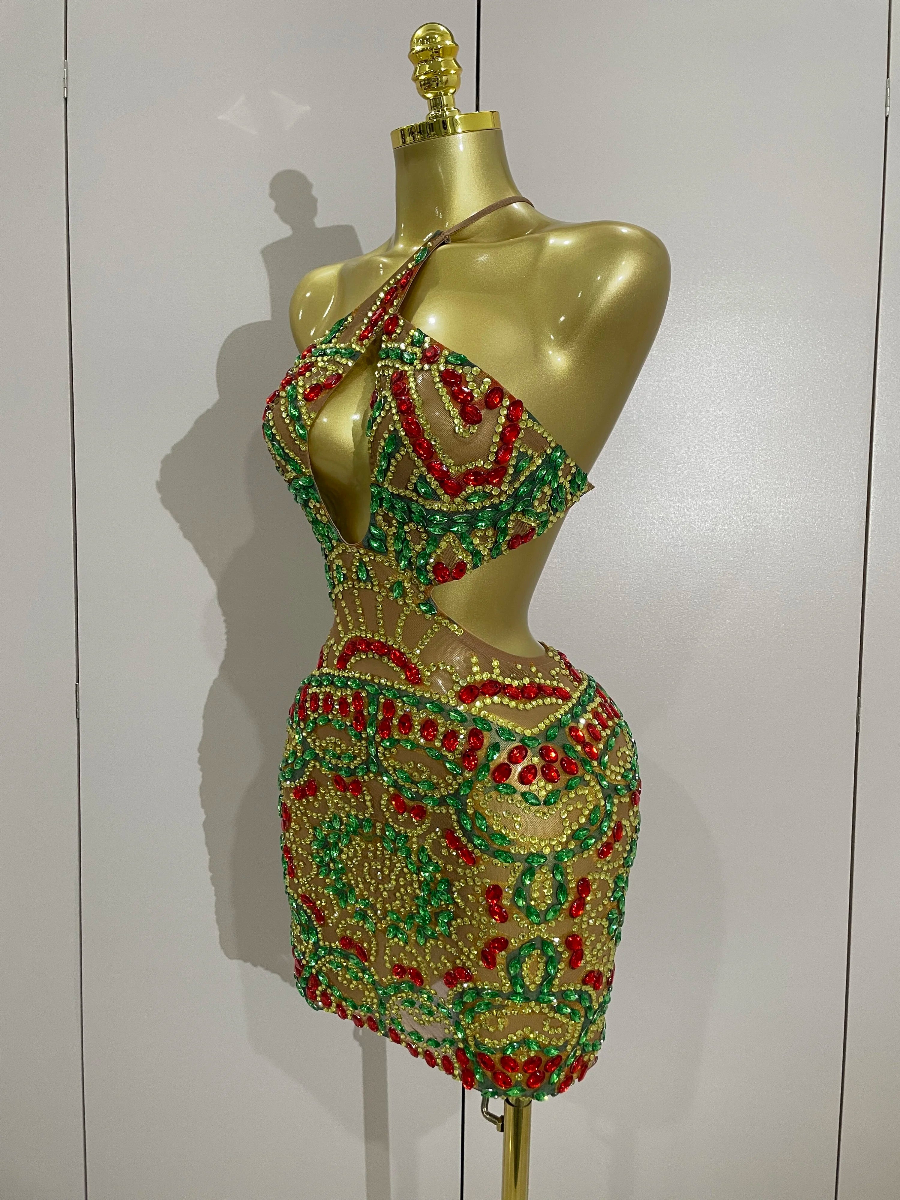 Bring the sparkle wherever you go in this Luxury Color Rhinestone Mesh Mini Dress. Designed with dazzling multi-colored crystals and a sexy cut-out mesh design, this piece was made for birthday queens, DJs, performers, and party girls who live for the lights. It’s bold, confident, and made to steal every camera flash.