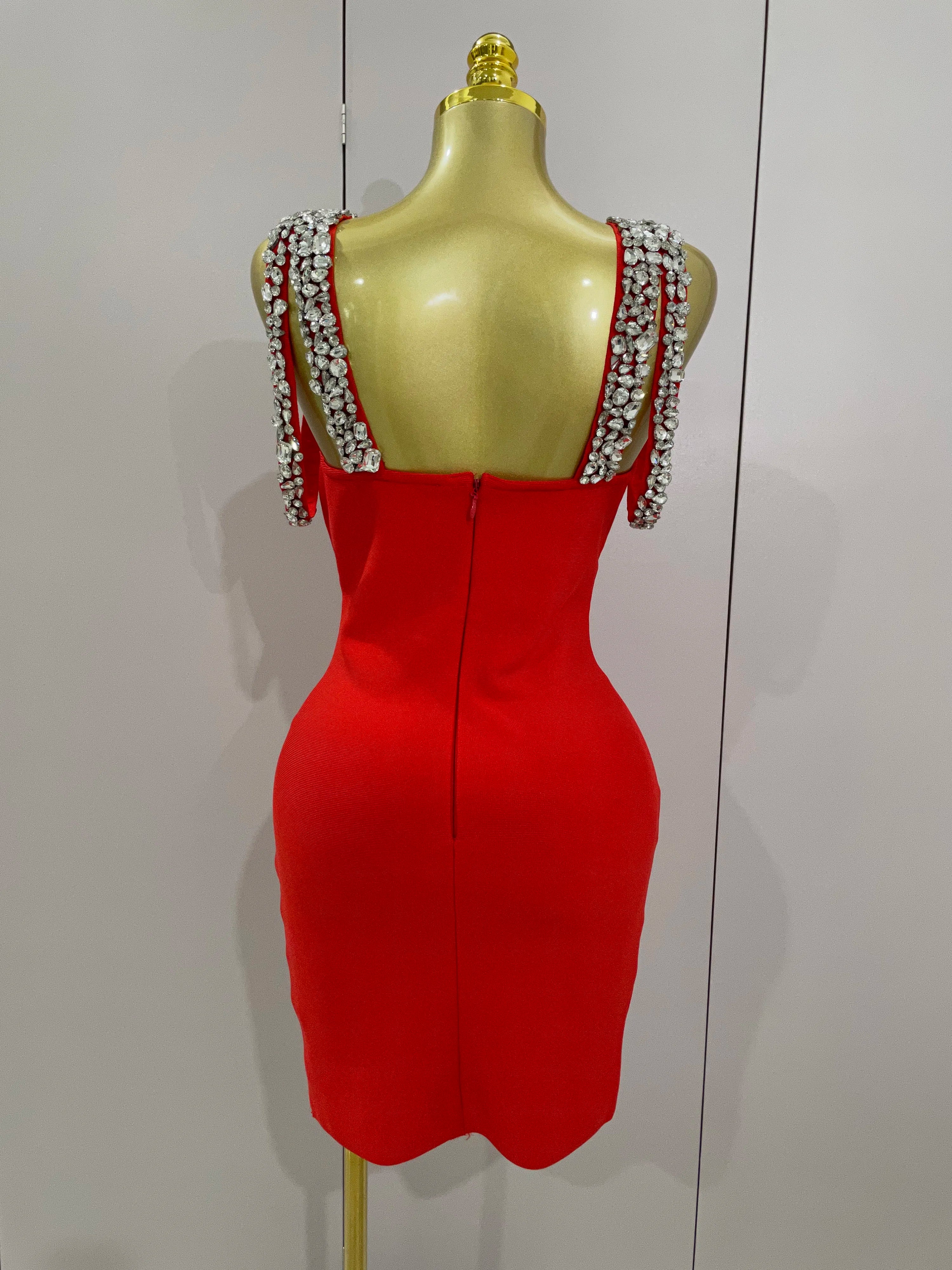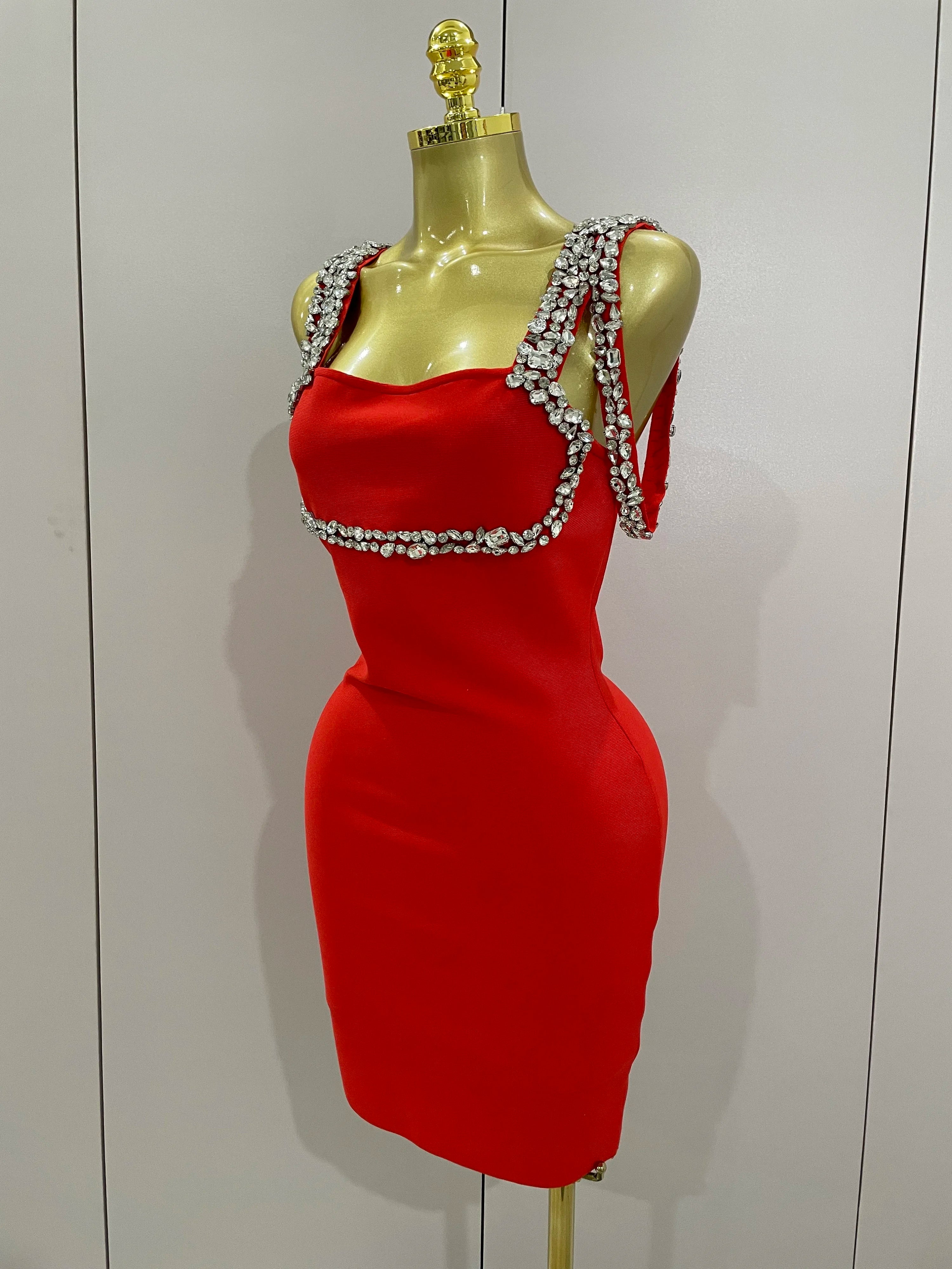 Alicia Luxury Sexy Shining Diamond Backless Bandage Bodycon Mini Dress