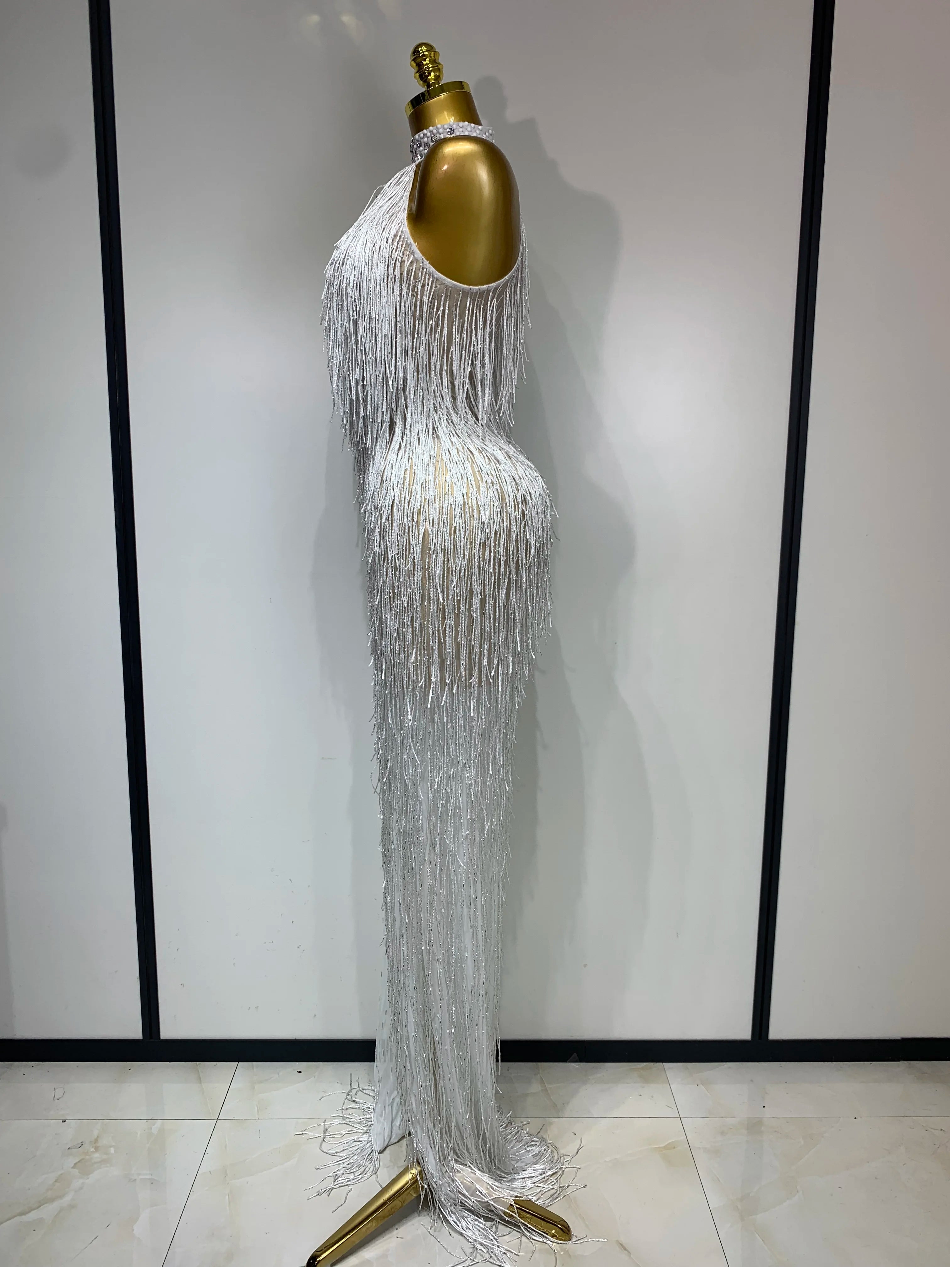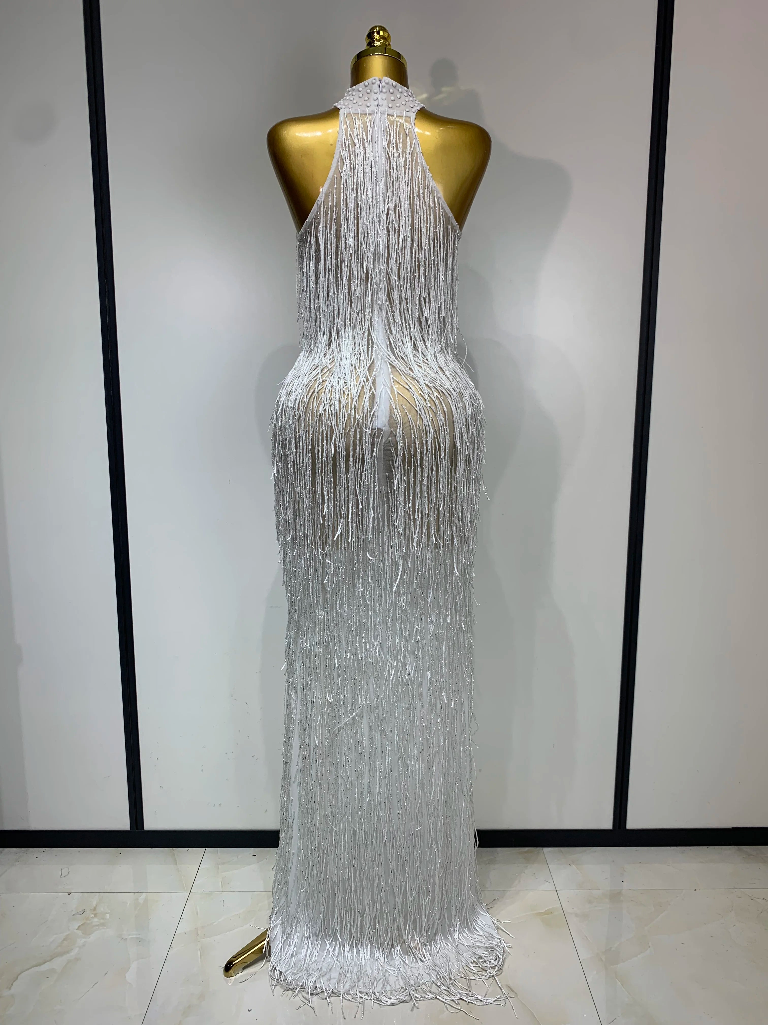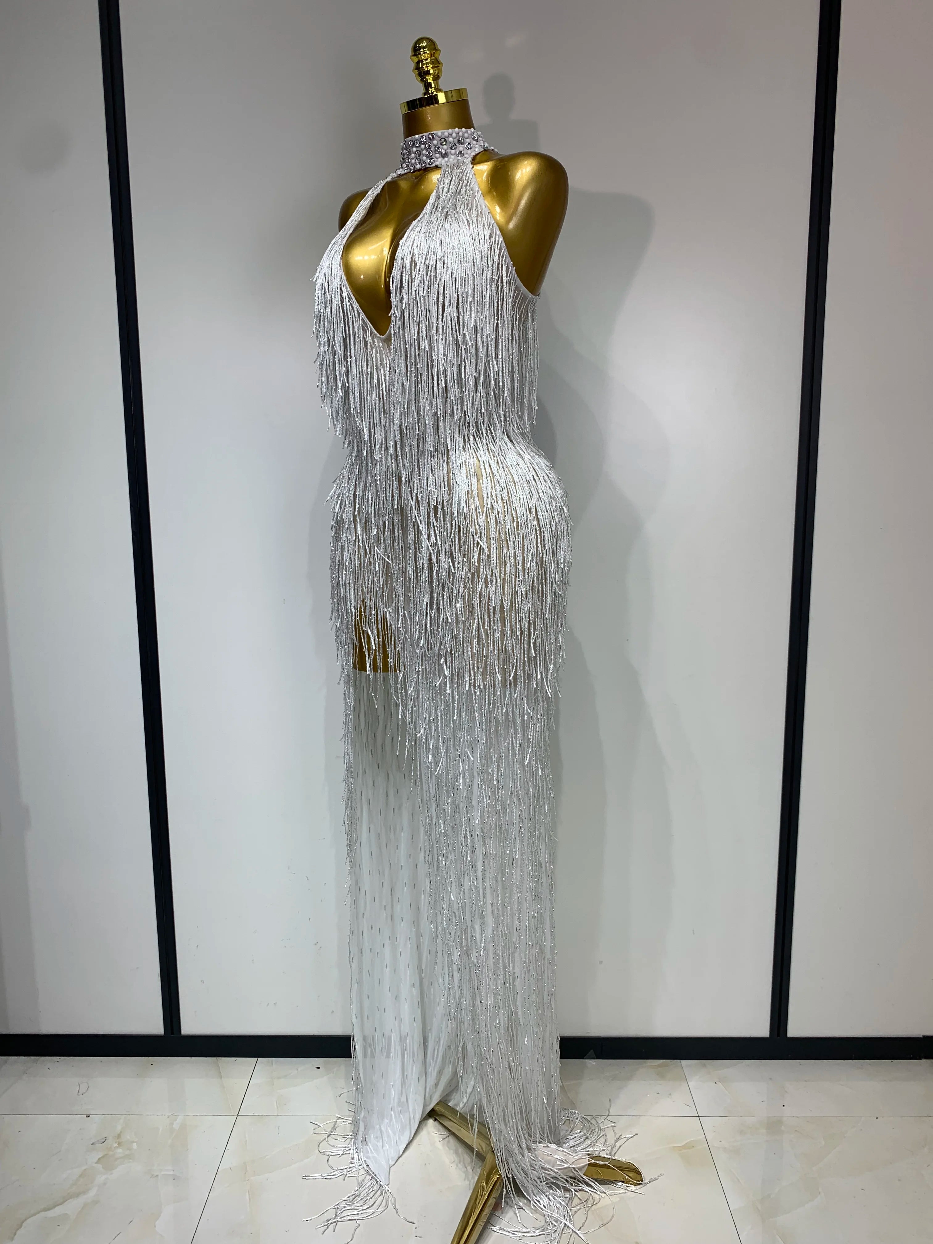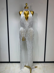 Allison Elegant Sexy Shiny Crystal Tassel Long Dress