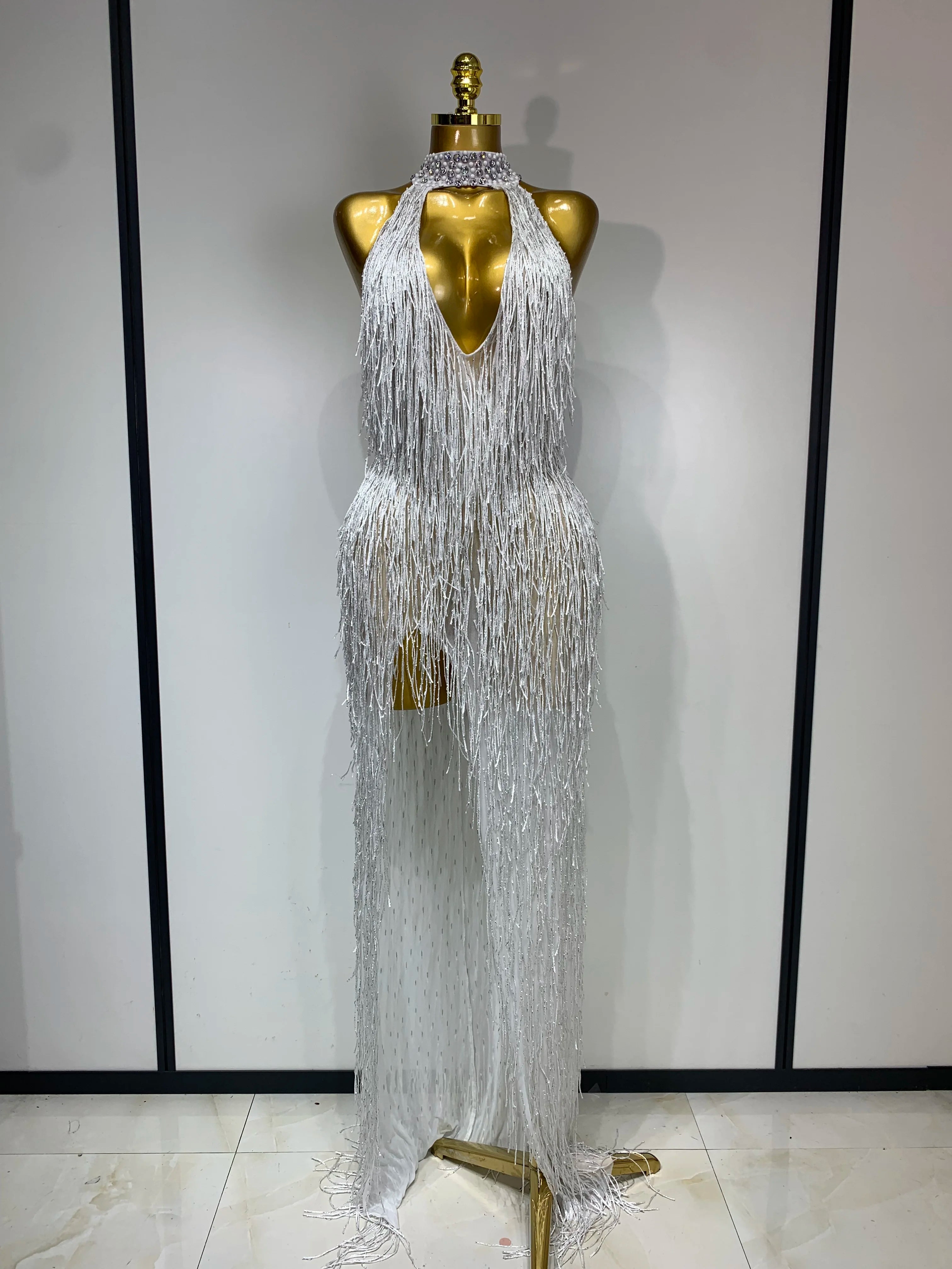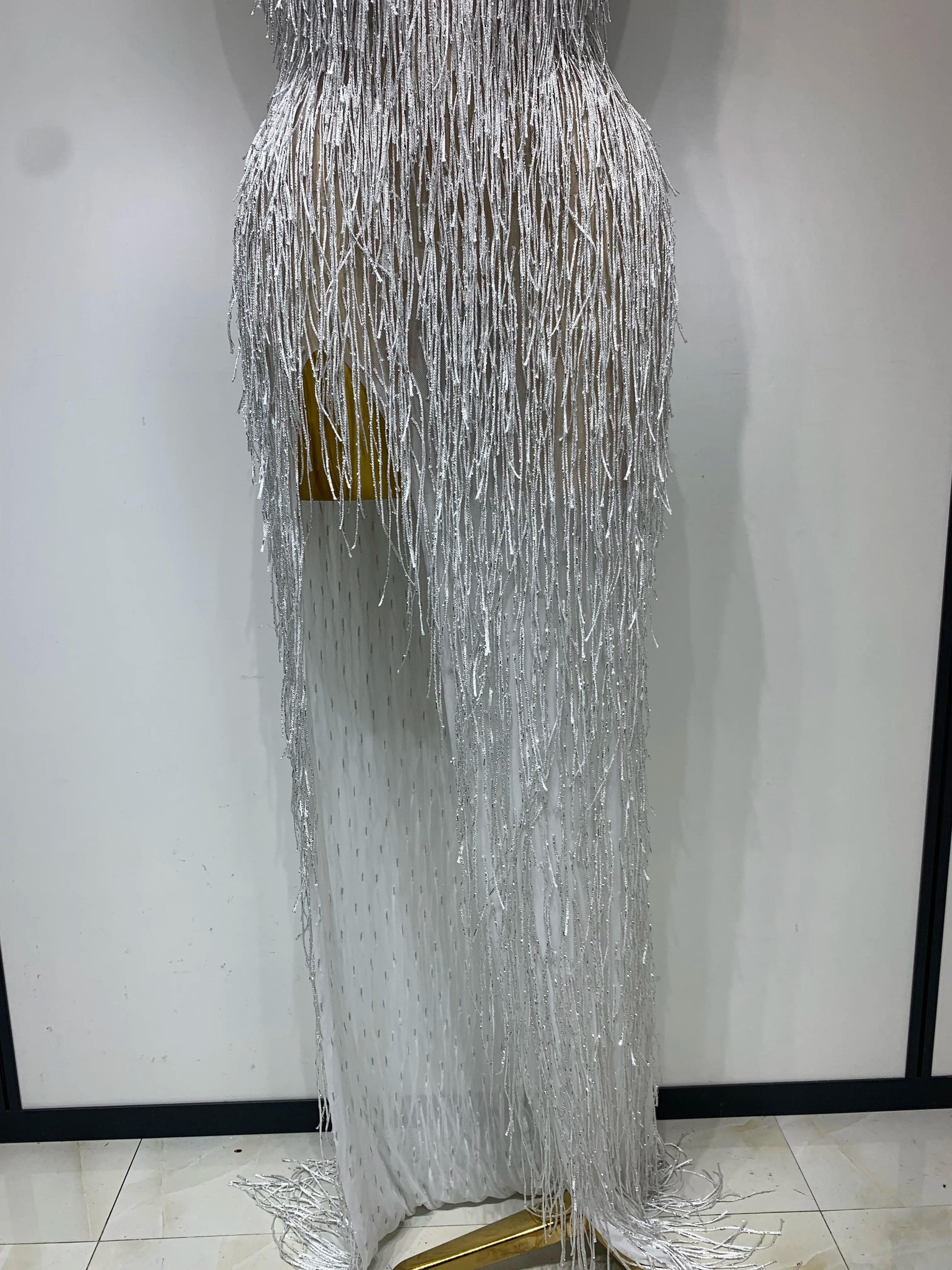 Allison elegant sexy shiny crystal tassel long dress