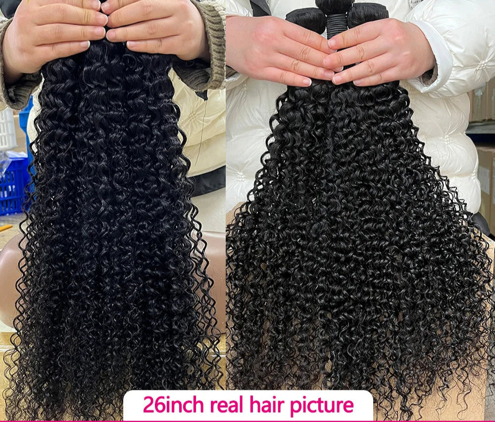 Brazilian Curly Wave Hair Bundles – 26 Inch Remy Human Hair Extensions in Natural Black 1B