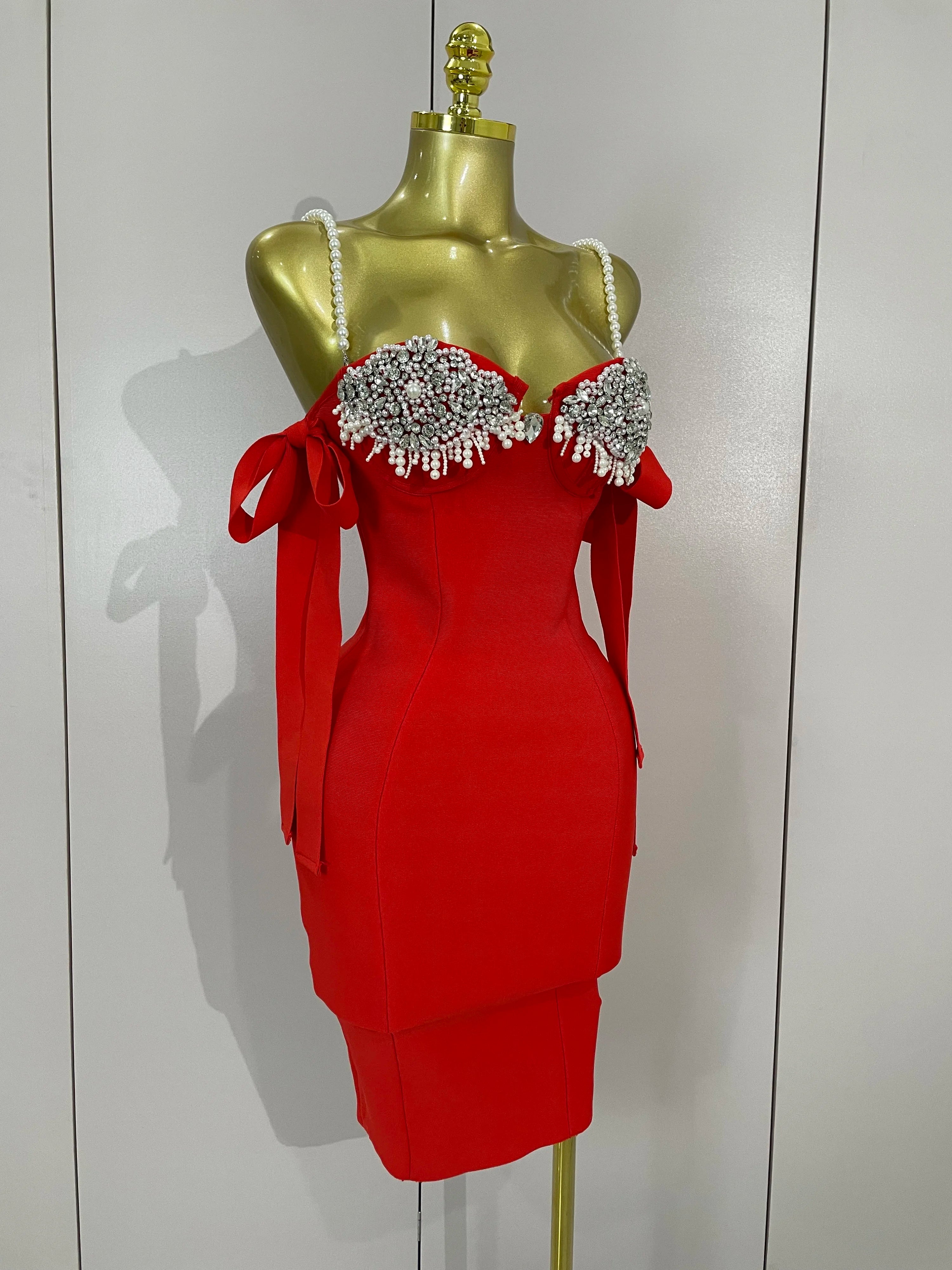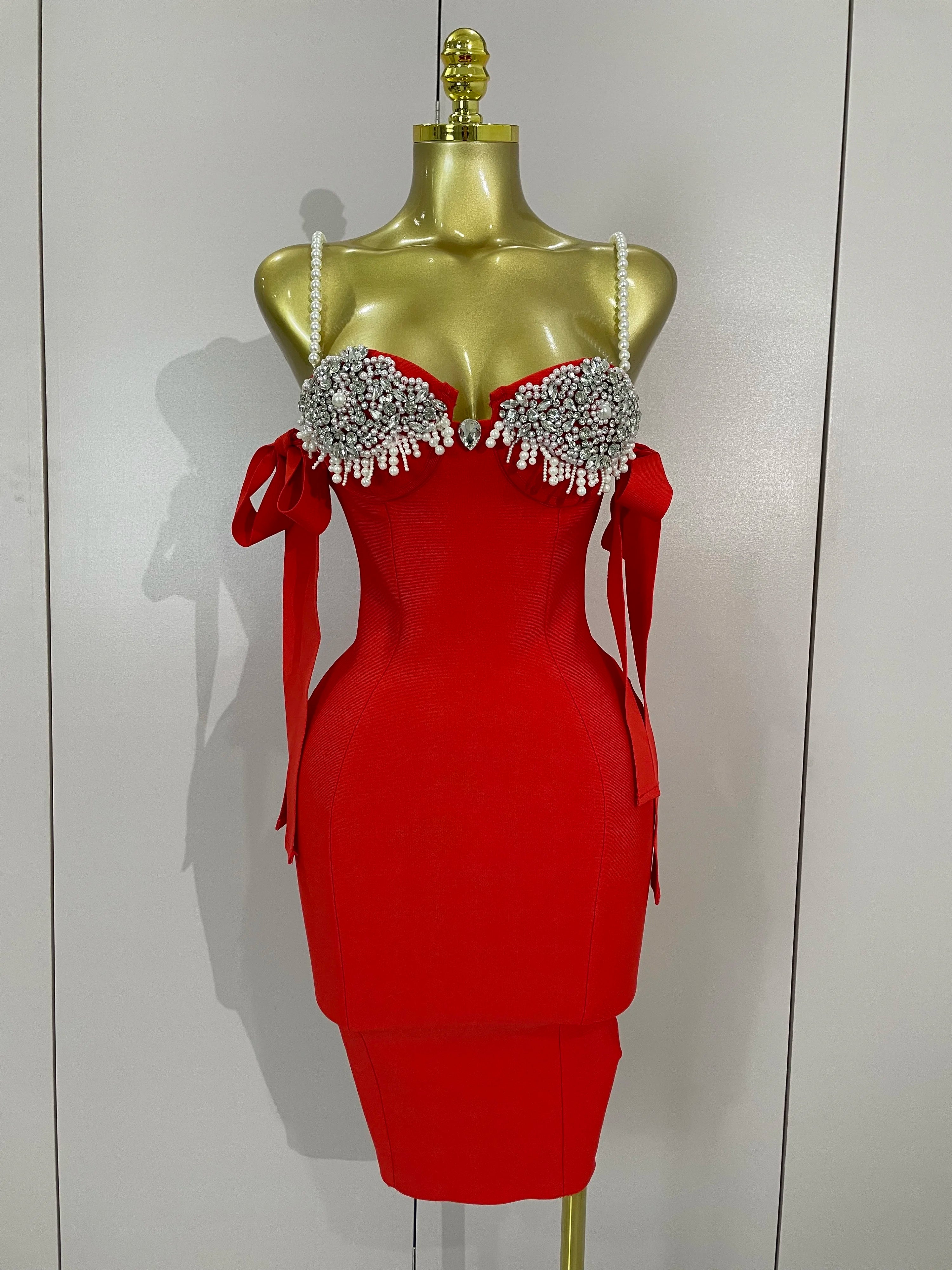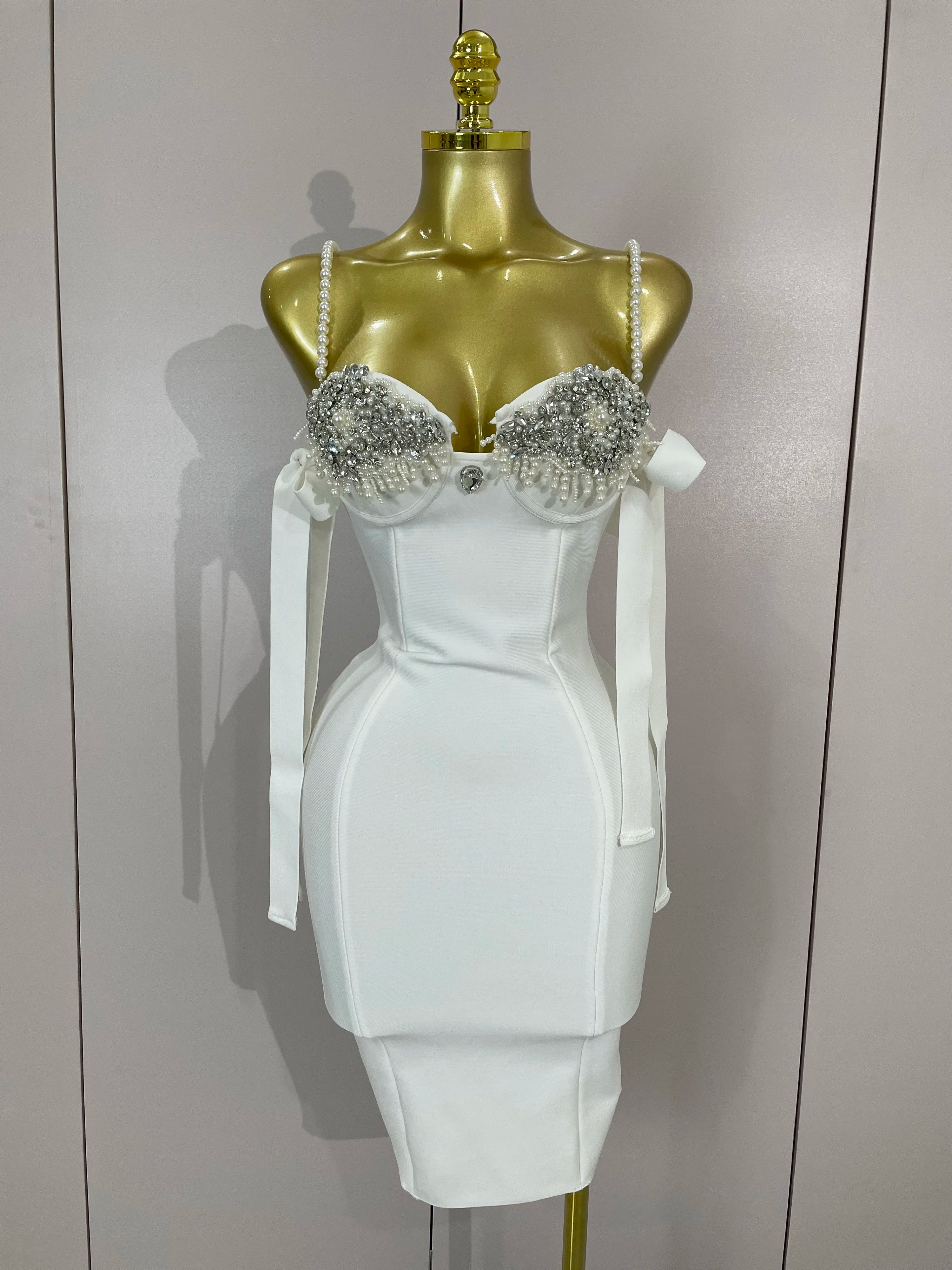 Ivana Diamond Beaded Halter Bodycon Bandage Dress