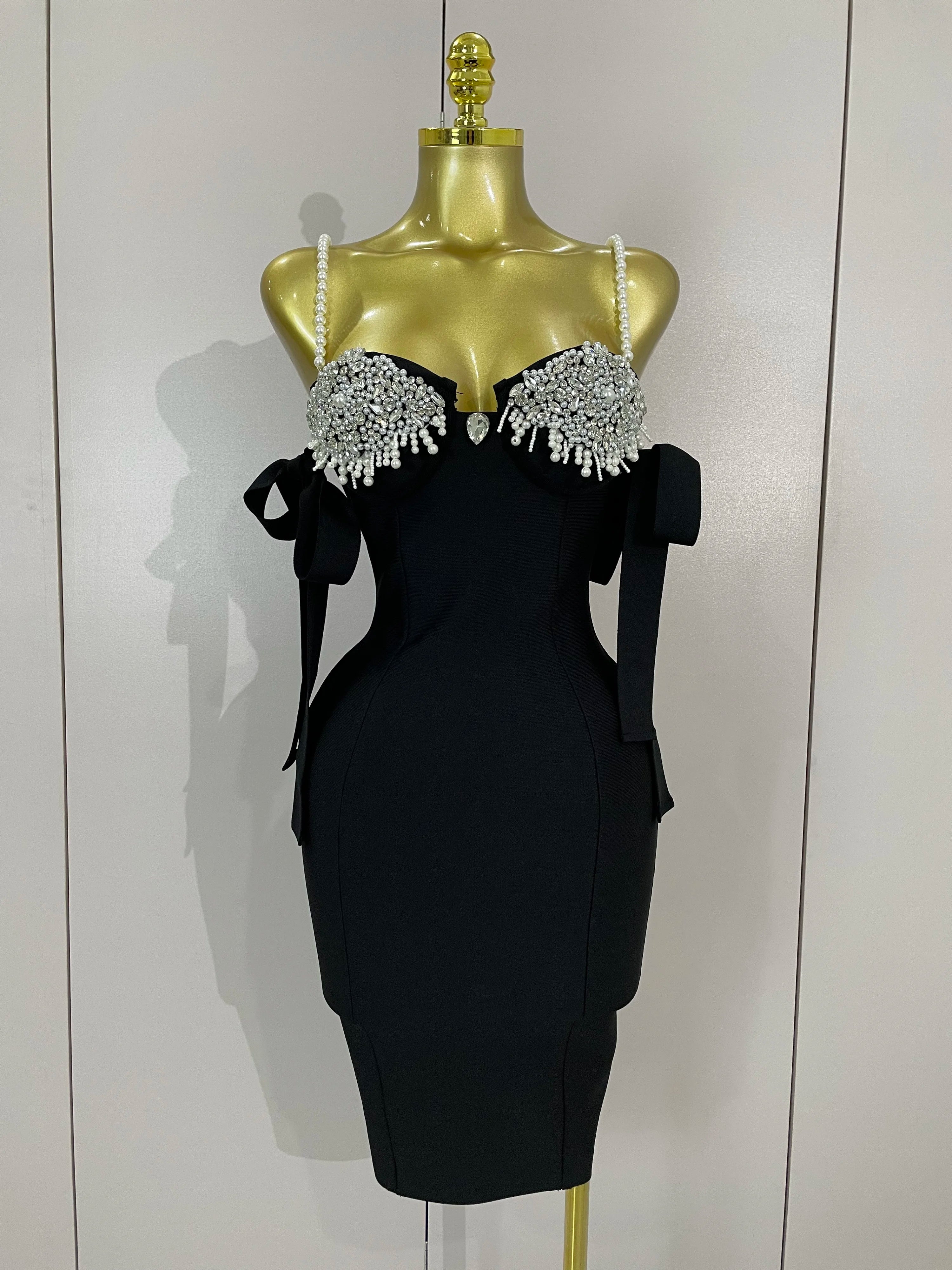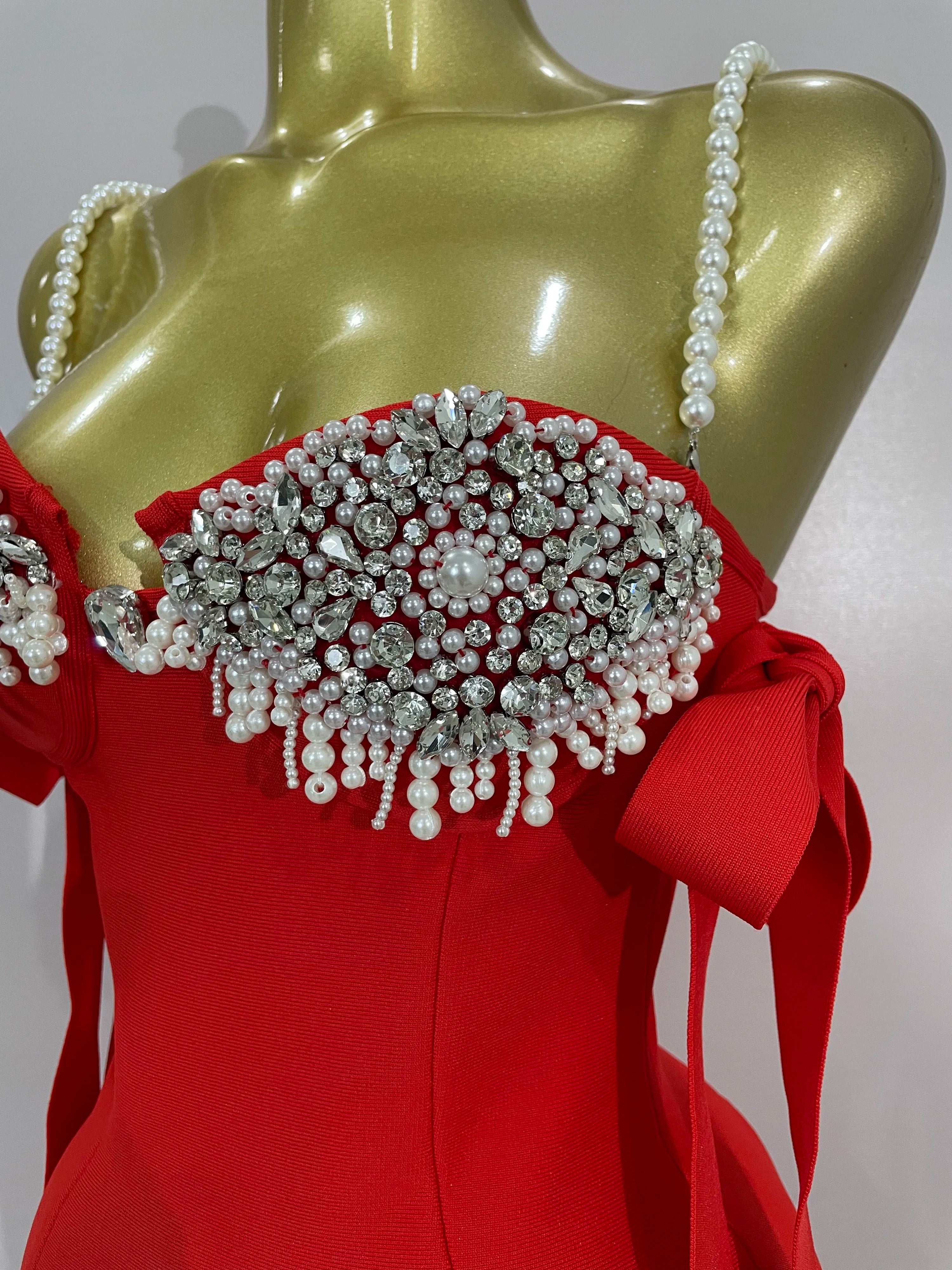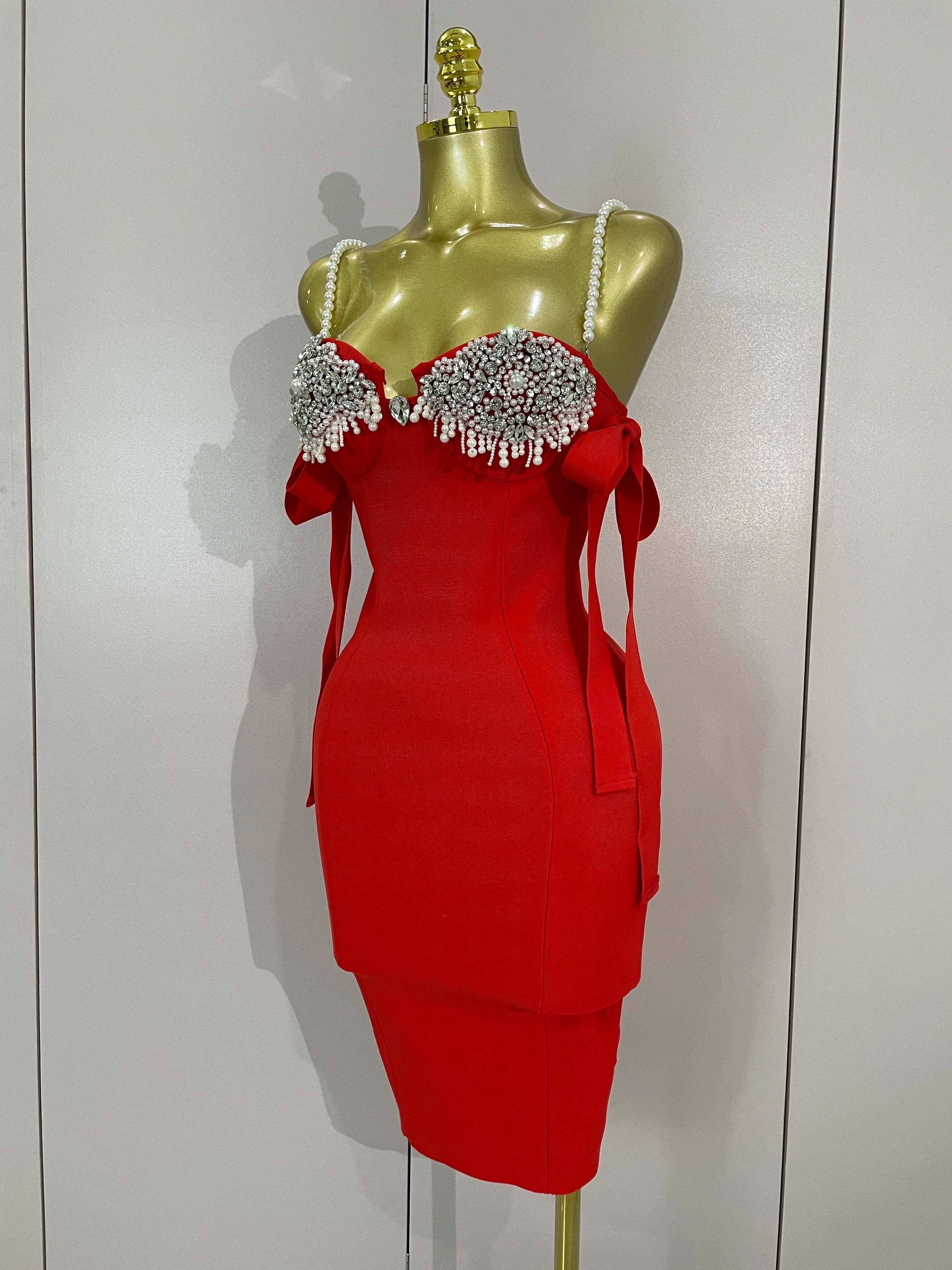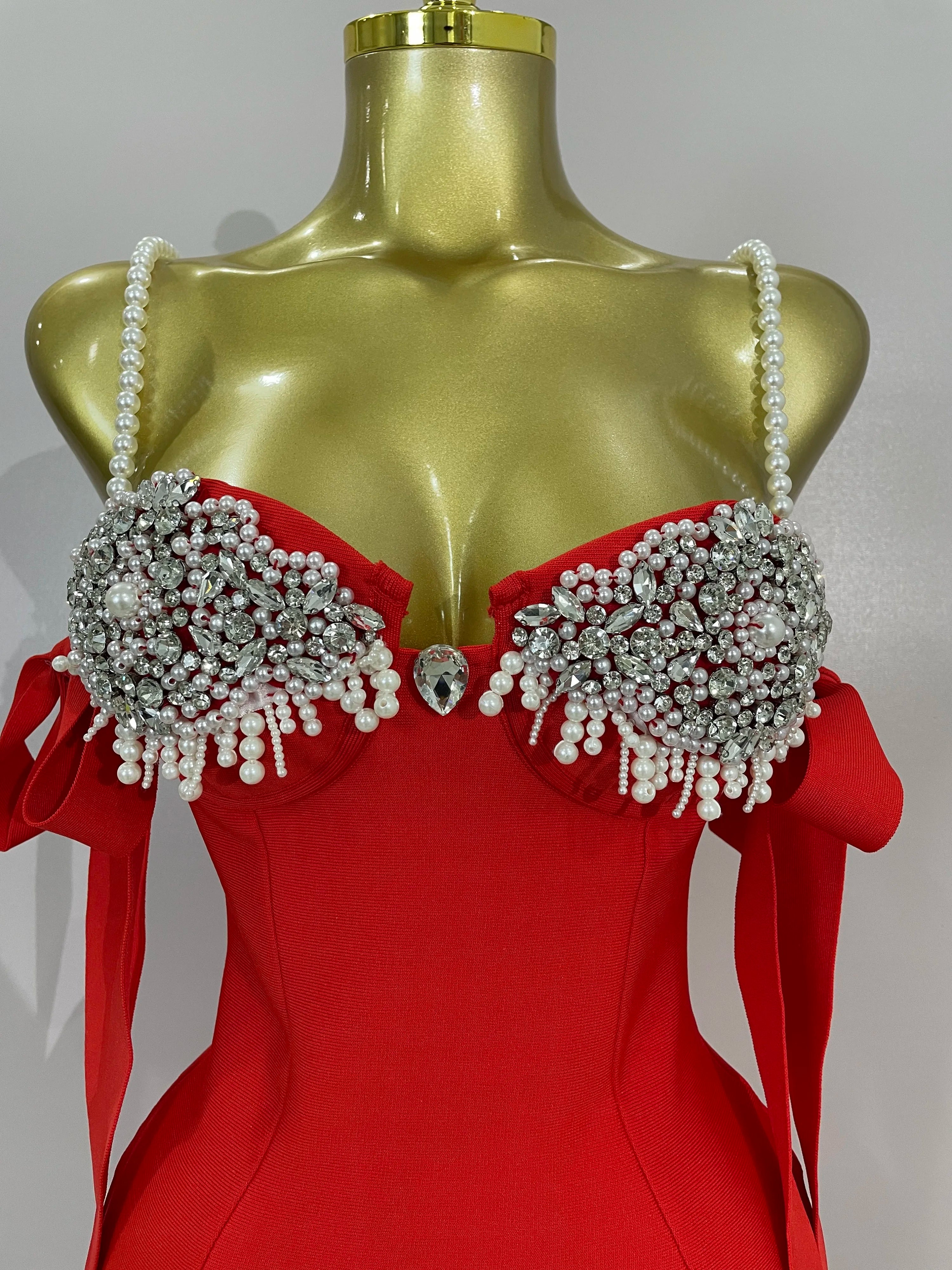 Ivana Diamond Beaded Halter Bodycon Bandage Dress