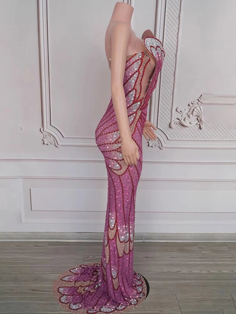 Shine like never before in the Ness Hot Stamping Strapless Elastic Dress. This sleek, body-hugging dress features a metallic hot stamping design that glimmers under any light. With its stretchy fit and wrapped chest detail, it delivers the perfect mix of comfort and confidence—ideal for prom, parties, and red-carpet-inspired nights.