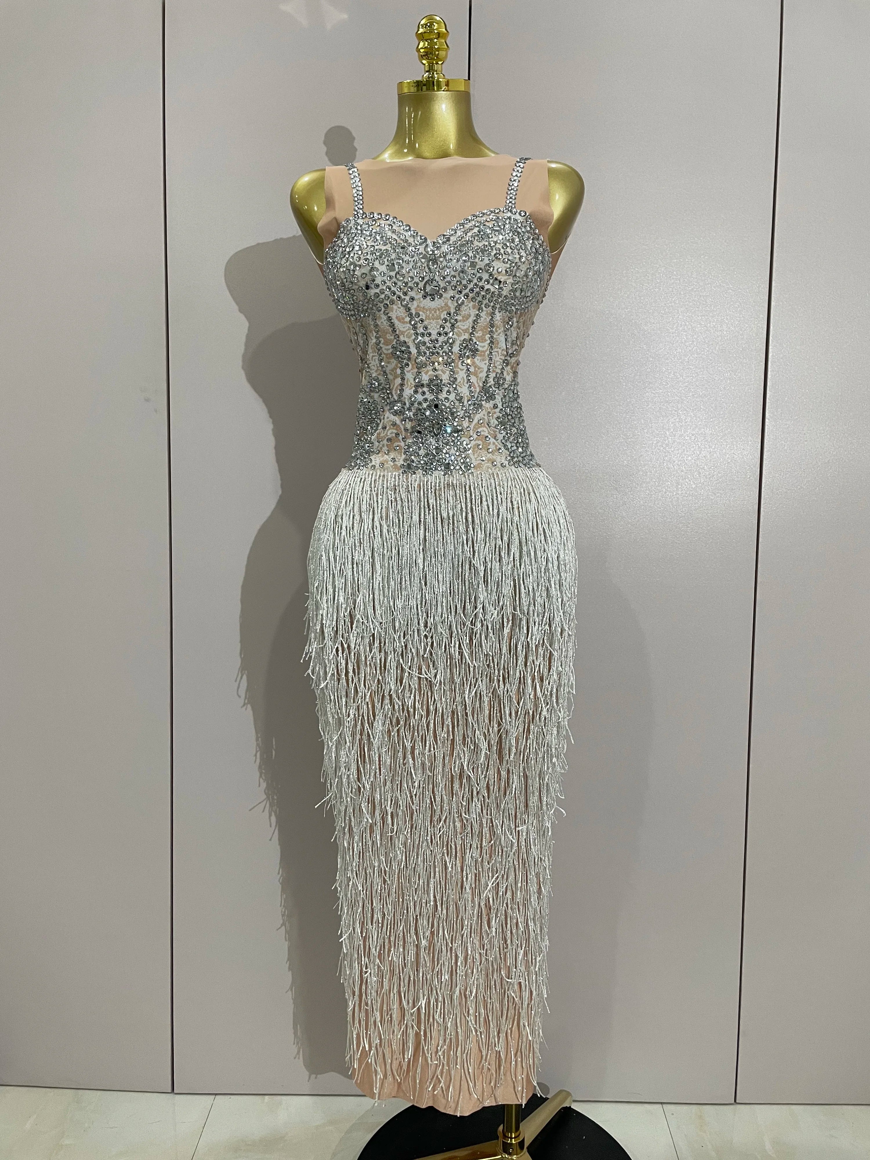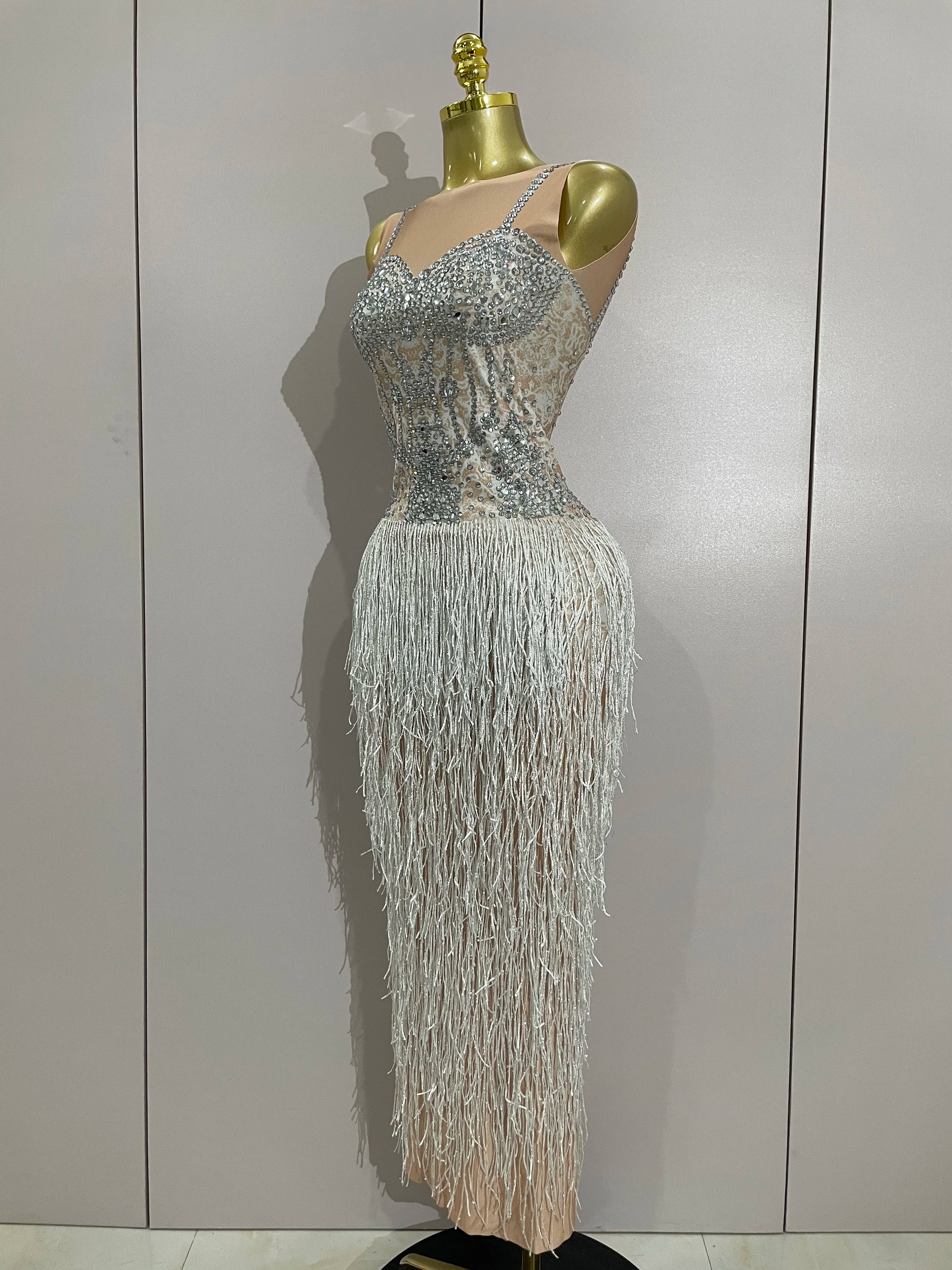 Seraphina Sparkly Rhinestone Tassel Long Dress