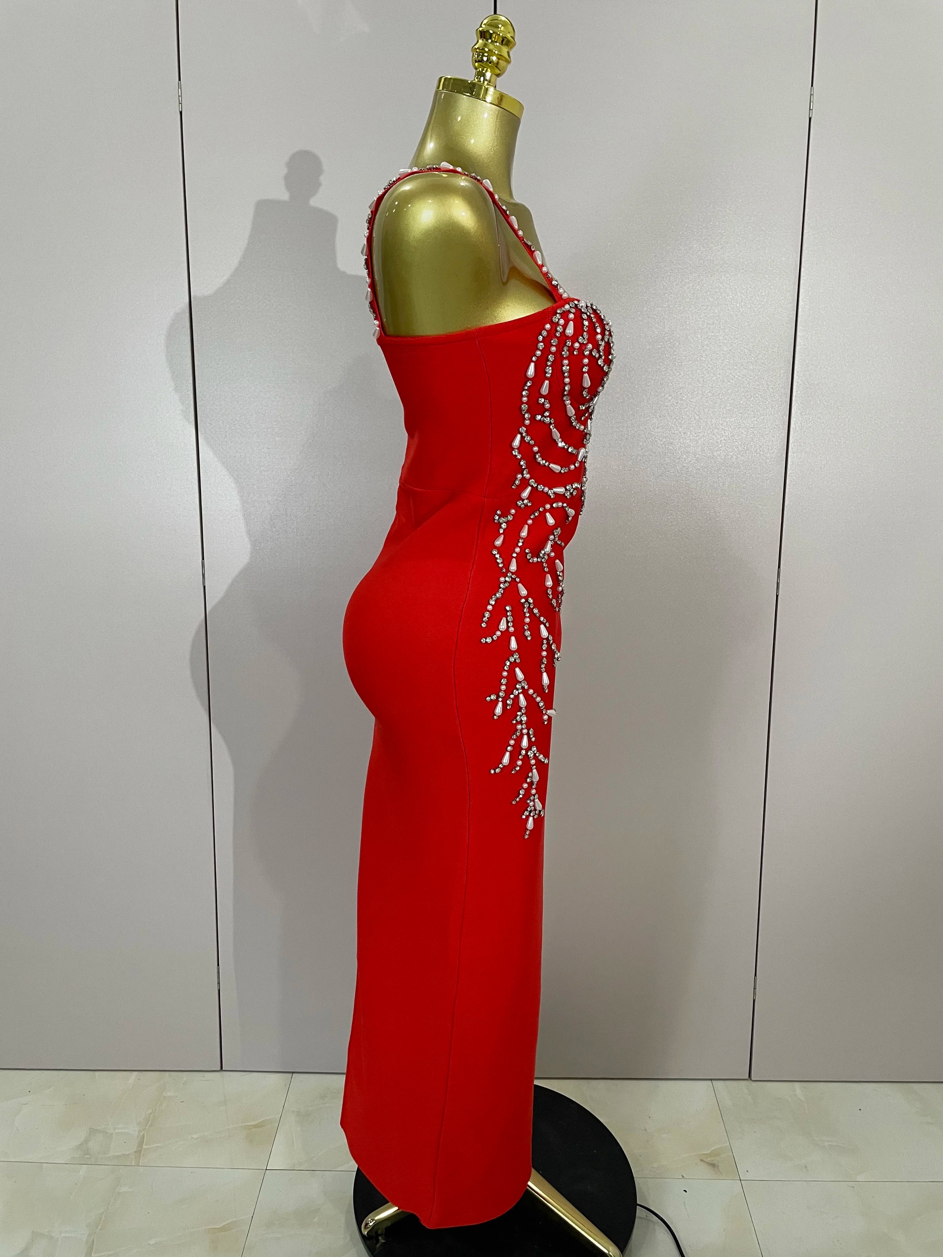 Tahlia Sexy Backless Red Beading Long Bodycon Bandage Dress