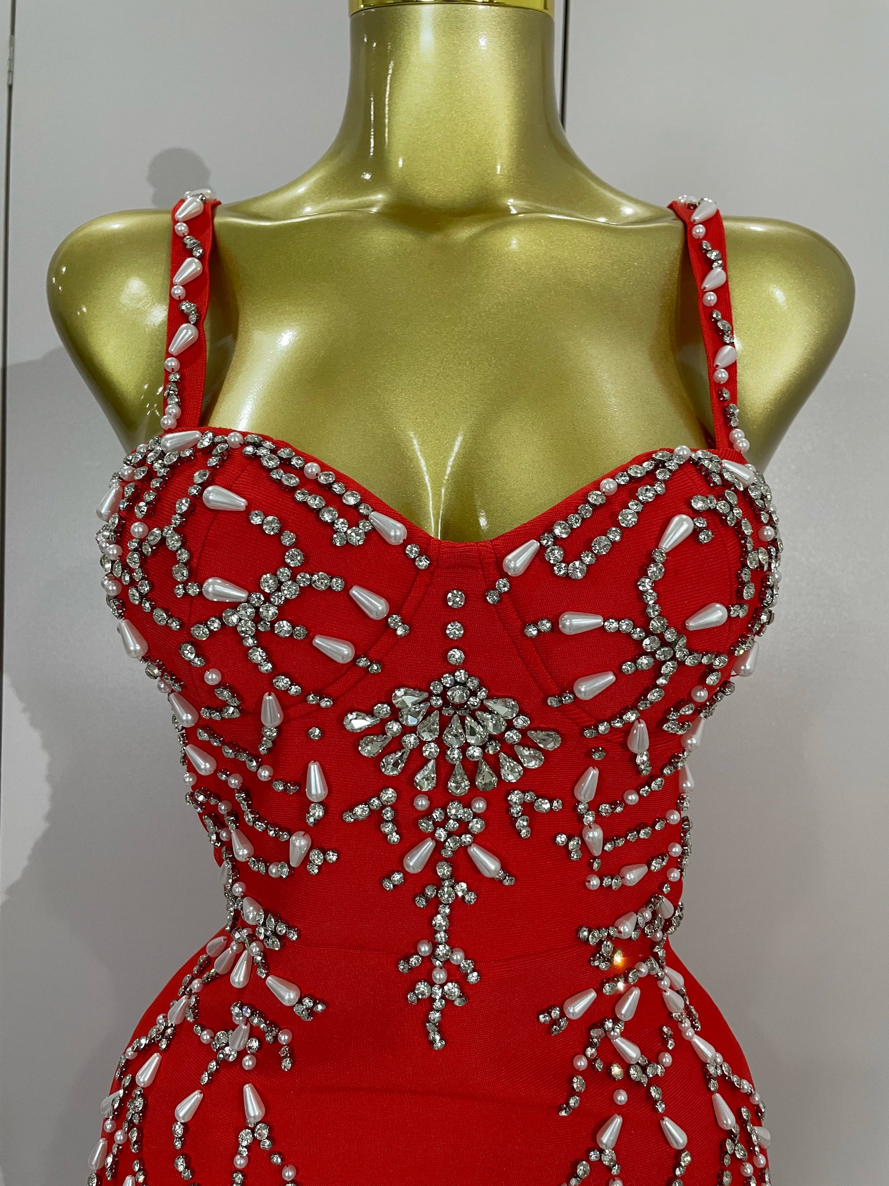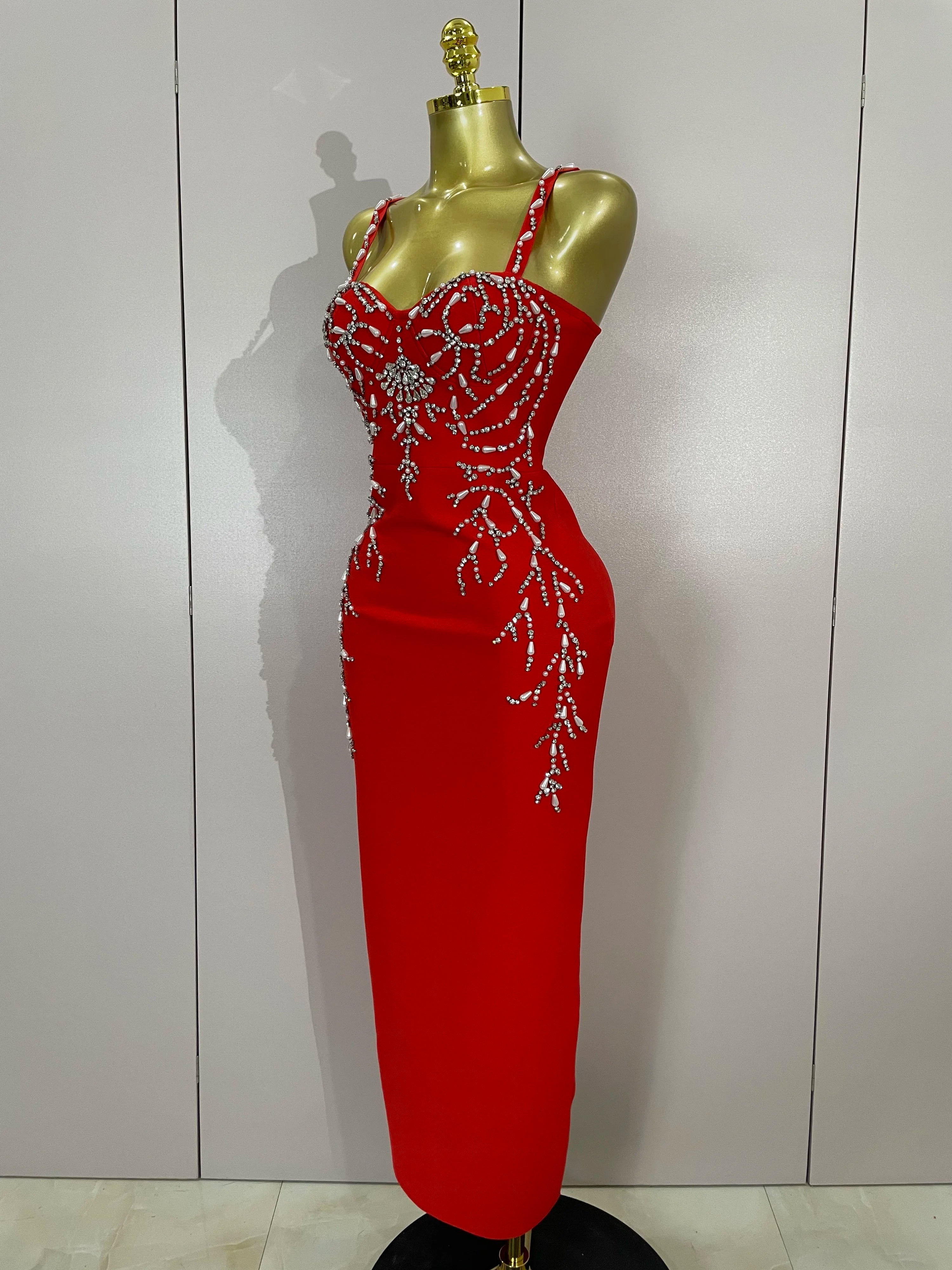 Tahlia sexy backless red beading long bodycon bandage dress with bead embellishments and slim-fit silhouette.