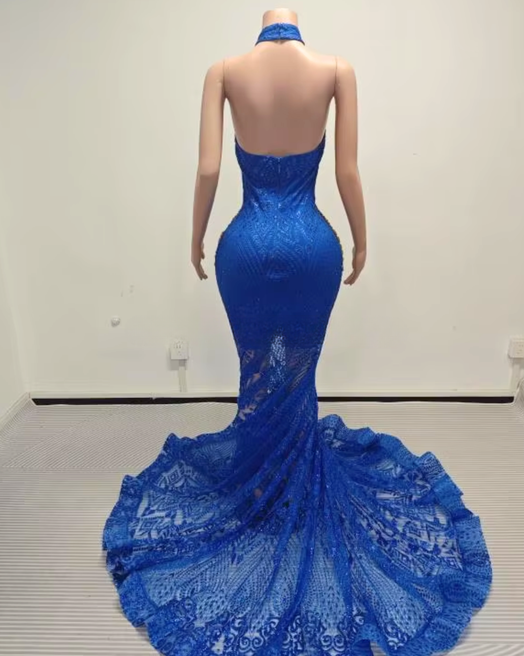Command the room in this glittery gold prom dress, layered with blue sequin brilliance and rhinestone detailing over sheer mesh. The illusion silhouette sculpts a bold yet graceful figure, while the interplay of gold shimmer and sapphire sparkle creates a magnetic visual rhythm. Designed for high-drama entrances and unforgettable exits, this gown blends celestial luxury with modern edge—perfect for galas, red carpet moments, or any night that demands radiance.